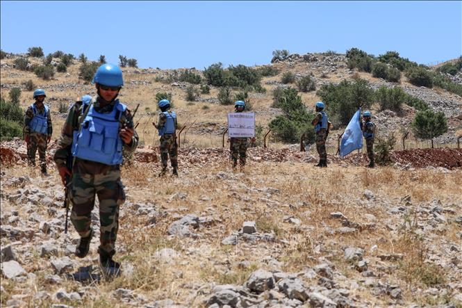 ນັກຮົບ UNIFIL ລາດຕະເວນຢູ່ Kfarshuba, ທາງທິດໃຕ້ ລີບັງ (ພາບ: AFP/TTXVN) |