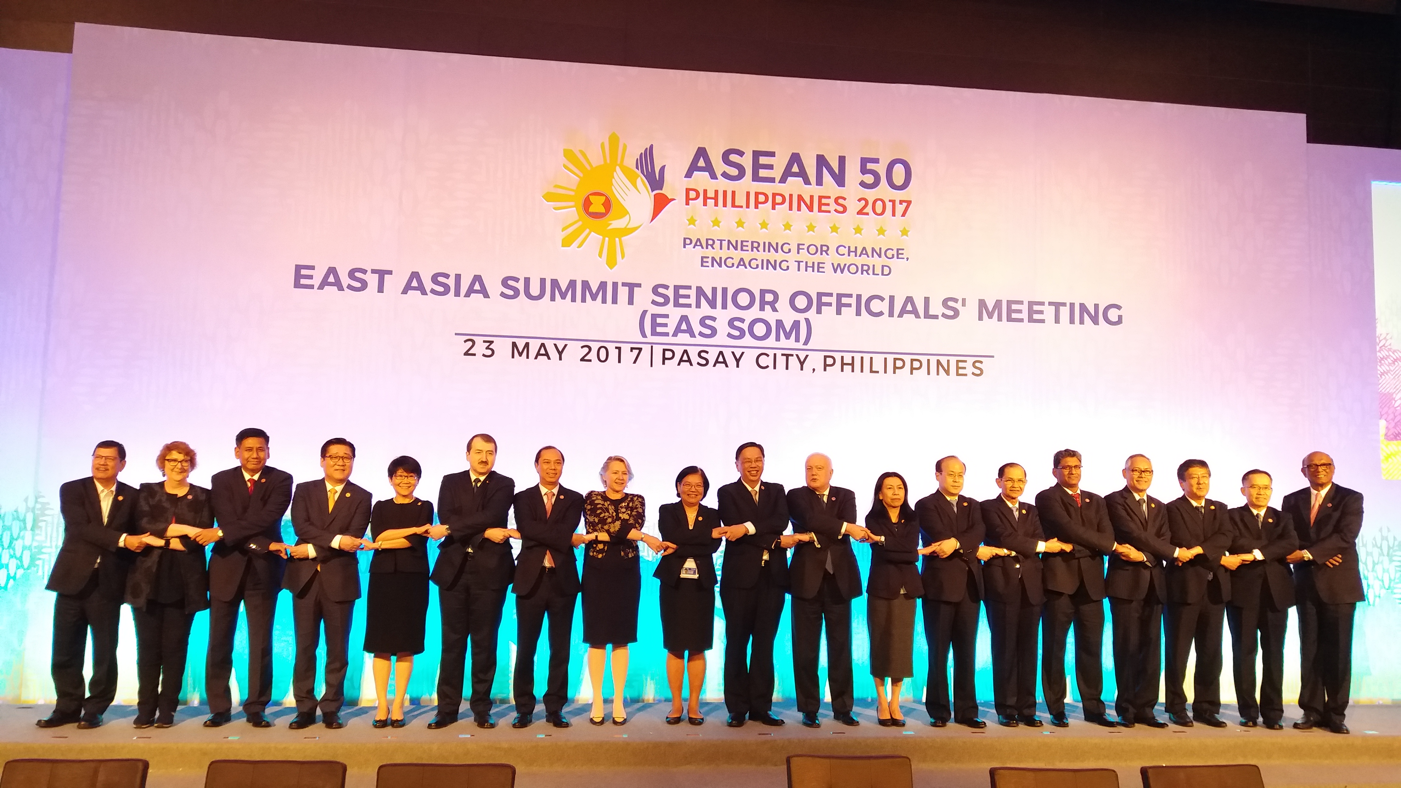 ທີ່ກອງປະຊຸມ SOM ອາຊຽນ + 3 ແລະ SOM EAS, ບັນດາປະເທດຄູ່ຮ່ວມມືຢືນຢັນ: ສືບຕໍ່ສະຫນັບສະຫນູນວິວັດການສ້າງປະຊາຄົມ ອາຊຽນ, ຄວາມສາມັກຄີໃນອາຊຽນ ແລະ ບົດບາດໃຈກາງຂອງ ອາຊຽນ ສຳລັບສັນຕິພາບ, ຄວາມໝັ້ນຄົງ ແລະ ການຮ່ວມມືພາກພື້ນ. ອາຊຽນ ແລະ ບັນດາປະເທດຄູ່ຮ່ວມມືກໍໄດ້ແລກປ່ຽນຄຳເຫັນກ່ຽວກັບບັນດາບັນຫາພາກພື້ນ ແລະ ສາກົນ ຊື່ງຕ່າງຝ່າຍຕ່າງມີຄວາມສົນໃຈ, ໃນນັ້ນ ມີສະພາບການຢູ່ແຫລມເກົາຫລີ ແລະ ທະເລຕາເວັນອອກ.