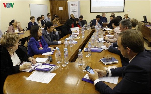 ກ່າວເປີດກອງປະຊຸມສຳມະນາ, ທ່ານໂງດຶກແມັ້ງເອກອັກຄະລັດຖະທູດຫວຽດນາມປະຈຳສະຫະພັນລັດເຊຍໄດ້ເນັ້ນໜັກວ່າ: ການພົວພັນດ້ານການເມືອງລະຫວ່າງລັດເຊຍແລະອາຊຽນພວມພັດທະນາຢ່າງຈົບງາມ, ກົນໄກການພົບປະ, ພິເສດແມ່ນລະດັບຂັ້ນສູງໄດ້ຮັກສາໄວ້ຢ່າງເປັນປົກກະຕິ. ໃນຂົງເຂດປ້ອງກັນຄວາມສະຫງົບ, ສອງຝ່າຍພວມປະຕິບັດບັນດາກົນໄກການແລກປ່ຽນທັດສະນະແລະ ການເຄື່ອນໄຫວຮ່ວມໂດຍແນໃສ່ຕ້ານບັນດາໄພນາບຂູ່ແບບເກົ່າແລະແບບໃໝ່ ກໍ່ຄືການກໍ່ການຮ້າຍ, ອາຊະຍາກຳຂ້າມຊາດ, ກໍ່ຄືການແກ້ໄຂບັນດາບັນຫາທີ່ຕິດພັນເຖິງຄວາມໝັ້ນຄົງທາງທະເລ, ຄວາມເສລີໃນການເດີນເຮືອ, ການບິນ, ສະໜັບສະໜູນການປະຕິບັດຖະແຫຼງການວ່າດ້ວຍການປະພຶດຂອງບັນດາຝ່າຍທີ່ກ່ຽວຂ້ອງຢູ່ທະເລຕາເວັນອອກ(DOC)ໃຫ້ຄົບຖ້ວນແລະມີປະສິດທິຜົນແລະບັນລຸໄດ້ກົດແຫ່ງການປະພຶດຂອງບັນດາຝ່າຍຢູ່ທະເລຕາເວັນອອກ(COC) ໂດຍໄວ. ທ່ານ ເອກອັກຄະລັດຖະທູດຖືວ່າໜຶ່ງໃນບັນດາມາດຖານຂອງການພົວພັນຄູ່ຮ່ວມຍຸດທະສາດລະຫວ່າງລັດເຊຍແລະອາຊຽນແມ່ນການປະຕິບັດຕາມບັນດາບັນທັດຖານແລະຫຼັກການຂອງກົດໝາຍສາກົນ, ຕ້ານການອາລັກຂາແລະເຄື່ອນໄຫວພຽງແຕ່ຝ່າຍດຽວ…