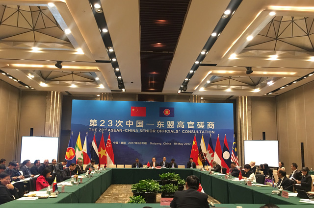 ກ່ຽວກັບບັນຫາທະເລຕາເວັນອອກ, ກອງປະຊຸມຮັບຮອງຜົນຂອງກອງປະຊຸມ SOM ອາຊຽນ - ຈີນ ກ່ຽວກັບ DOC (18/5/2017), ໃນນັ້ນມີເລື່ອງສອງຝ່າຍເຫັນດີຍື່ນສະເໜີຕໍ່ກອງປະຊຸມ ອາຊຽນ - ຈີນ (8/2017) ພິຈາລະນາ, ຮັບຮອງເອົາເນື້ອໃນຮ່າງ ຂໍ້ກຳນົດການປະພຶດຢູ່ທະເລຕາເວັນອອກ (COC), ຢືນຢັນນີ້ແມ່ນບາດກ້າວທຳອິດໃຫ້ວິວັດການເຈລະຈາຕໍ່ໄປກ່ຽວກັບການສ້າງເອກະສານ COC ຢ່າງແທດຈິງ, ມີລັກສະນະບັງຄັບກ່ຽວກັບດ້ານກົດໝາຍ, ປະກອບສ່ວນຮັກສາສັນຕິພາບ, ສະຖຽນລະພາບຢູ່ພາກພື້ນ.