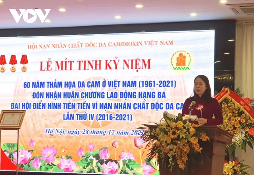 ເນື່ອງໃນໂອກາດນີ້, ທ່ານນາງຮອງປະທານປະເທດ ຫວໍທິແອັງຊວັນ ໄດ້ມອບຫຼຽນໄຊແຮງງານຊັ້ນ III ໃຫ້ແກ່ສະມາຄົມ ຜູ້ປະສົບເຄາະຮ້າຍຈາກທາດພິດສີສົ້ມ/ດີໂອຊິນ.