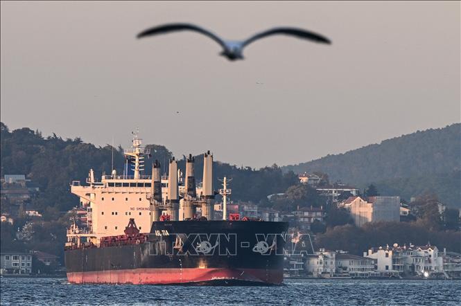 ກຳປັ່ນຂົນສົ່ງທັນຍາພືດຂອງ ຢູແກຼນ ໄປຕາມຊ່ອງແຄບທະເລ Bosphorus ຢູ່ Istanbul, ປະເທດ ຕວກກີ ເມື່ອວັນທີ 2/11/2022. (ພາບ: AFP/TTXVN)