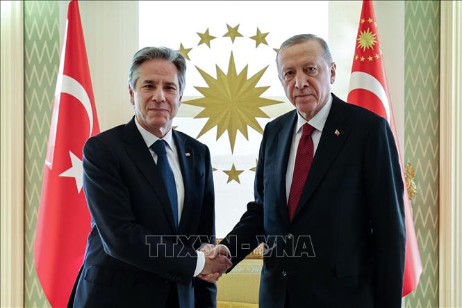 ທ່ານປະທານາທິບໍດີ ຕວັກກີ Recep Tayyip Erdogan ແລະ ທ່ານລັດຖະມົນຕີການຕ່າງປະເທດ ອາເມລິກາ Antony Blinken ທີ່ການພົບປະຢູ່ Istanbul ໃນວັນທີ 6/1/2024. ພາບ: AFP/TTXVN |