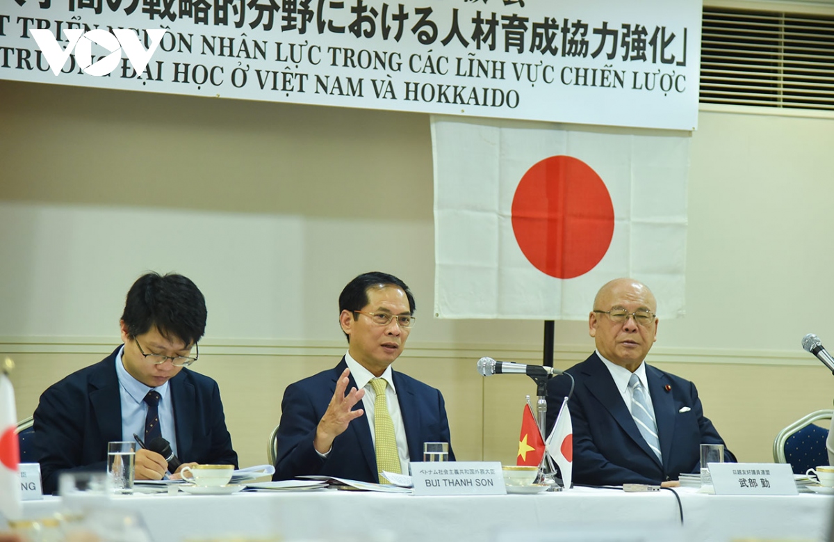 ກ່າວຄຳເຫັນທີ່ການໂອ້ລົມສົນທະນາ, ທ່ານລັດຖະມົນຕີການຕ່າງປະເທດ ບຸຍແທງເຊີນ ເນັ້ນໜັກວ່າ: ການຮ່ວມມືບຳລຸງສ້າງແຫຼ່ງຊັບພະຍາກອນມະນຸດ, ພິເສດແມ່ນແຫຼ່ງຊັບພະຍາກອນມະນຸດທີ່ມີຄຸນນະພາບສູງ, ໄດ້ຮັບການປະຕິບັດມາແຕ່ດົນນານ ແລະ ແມ່ນໜຶ່ງໃນ 3 ເນື້ອໃນສຳຄັນໃນການຮ່ວມມືຊ່ວຍເຫຼືອພັດທະນາຢ່າງເປັນທາງການ (ODA) ຮຸ່ນໃໝ່ ລະຫວ່າງ 2 ປະເທດ. ທ່ານລັດຖະມົນຕີໃຫ້ຮູ້ວ່າ: ຍີ່ປຸ່ນ ແມ່ນໜຶ່ງໃນບັນດາປະເທດໜູນຊ່ວຍຂະແໜງການສຶກສາ ແລະ ບຳລຸງສ້າງຫວຽດນາມ ໃຫຍ່ກວ່າໝູ່, ຫວຽດນາມ ແມ່ນປະເທດທຳອິດໃນໂລກທີ່ນຳພາສາຍີ່ປຸ່ນເຂົ້າໃນຫຼັກສູດການສອນຢູ່ໂຮງຮຽນມັດທະຍົມຕອນຕົ້ນແຕ່ປີ 2003 ແລະ ຂັ້ນປະຖົມແຕ່ປີ 2019. ປະຈຸບັນ, ມີນັກສຶກສາຫວຽດນາມ 43.000 ກວ່າຄົນພວມຮ່ຳຮຽນຢູ່ ຍີ່ປຸ່ນ, ນີ້ແມ່ນກຳລັງທີ່ສຳຄັນເພື່ອພັດທະນາເສດຖະກິດ - ສັງຄົມຂອງ 2 ປະເທດ ແລະ ຮັດແໜ໊ນການພົວພັນມິດຕະພາບ ແລະ ຄວາມເຂົ້າໃຈກັນລະຫວ່າງປະຊາຊົນ 2 ປະເທດ.