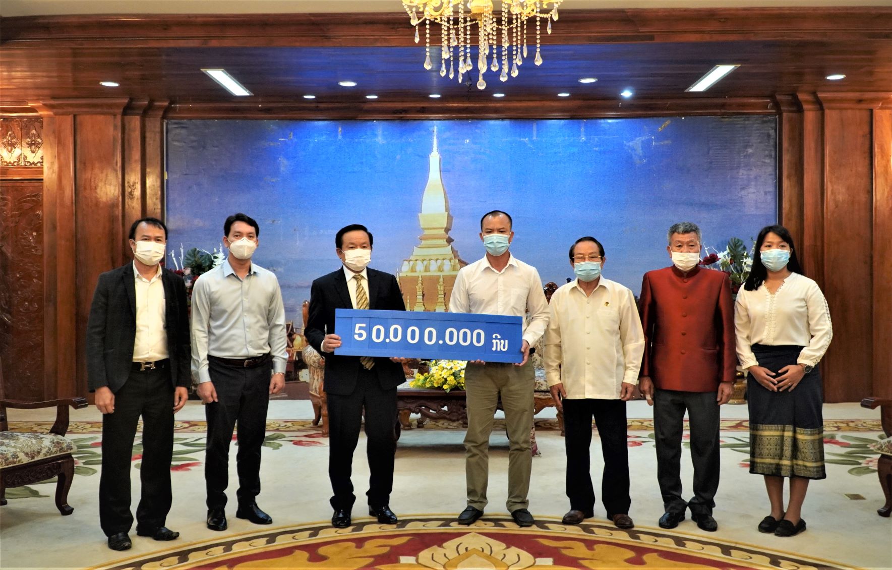 ວັນທີ 18 ມິຖຸນາ, ຜູ້ຕາງໜ້າສະມາຄົມຊາວຫວຽດນາມ ອາໄສຢູ່ນະຄອນຫຼວງວຽງຈັນ ໄດ້ມອບເງິນສົດດ້ວຍມູນຄ່າ 50 ລ້ານກີບ (ປະມານ 115 ລ້ານດົ່ງ) ໃຫ້ແກ່ອຳນາດການປົກຄອງນະຄອນຫຼວງວຽງຈັນ ເພື່ອແນໃສ່ຕອບສະໜອງບັ້ນຂົນຂວາຍບໍລິຈາກເງິນ ແບ່ງປັນກັບນະຄອນໂຮ່ໂນ້ຍ ແລະ ນະຄອນໂຮ່ຈີມິນ ເພື່ອຕ້ານໂລກລະບາດໂຄວິດ 19. ທ່ານພູຂົງ ບັນນະວົງ ຮອງເຈົ້າຄອງນະຄອນຫຼວງວຽງຈັນ ໃຫ້ຮູ້ວ່າ: ນະຄອນຮ່າໂນ້ຍ ແລະ ນະຄອນໂຮ່ຈີມິນ ແມ່ນສອງນະຄອນແຮກສ່ຽວກັບນະຄອນຫຼວງວຽງຈັນ, ເລື່ອງແບ່ງປັນຊື່ງກັນ ແລະ ກັນໃນຈຸດເວລານີ້ແມ່ນຈຳເປັນທີ່ສຸດ, ມີຄວາມໝາຍອັນໃຫ່ຍຫຼວງໃນວຽກງານປ້ອງກັນ, ສະກັດກັ້ນໂລກລະບາດໂຄວິດ 19; ເພີ່ມທະວີການພົວພັນອັນດີງາມ ລະຫວ່າງນະຄອນຫຼວງວຽງຈັນ ກັບນະຄອນໂຮ່ໂນ້ຍ ແລະ ນະຄອນໂຮ່ຈີມິນ ແລະ ເພີ່ມພູນຄູນສ້າງນຳ້ໃຈສາມັກຄີມິດຕະພາບແບບພິເສດ, ການຮ່ວມມືຮອບດ້້ານລະຫວ່າງສອງປະເທດຫວຽດນາມ ແລະ ລາວ ໃຫ້ນັບມື້ນັບແໜ້ນແຟ້ນກ່ວາອີກ.