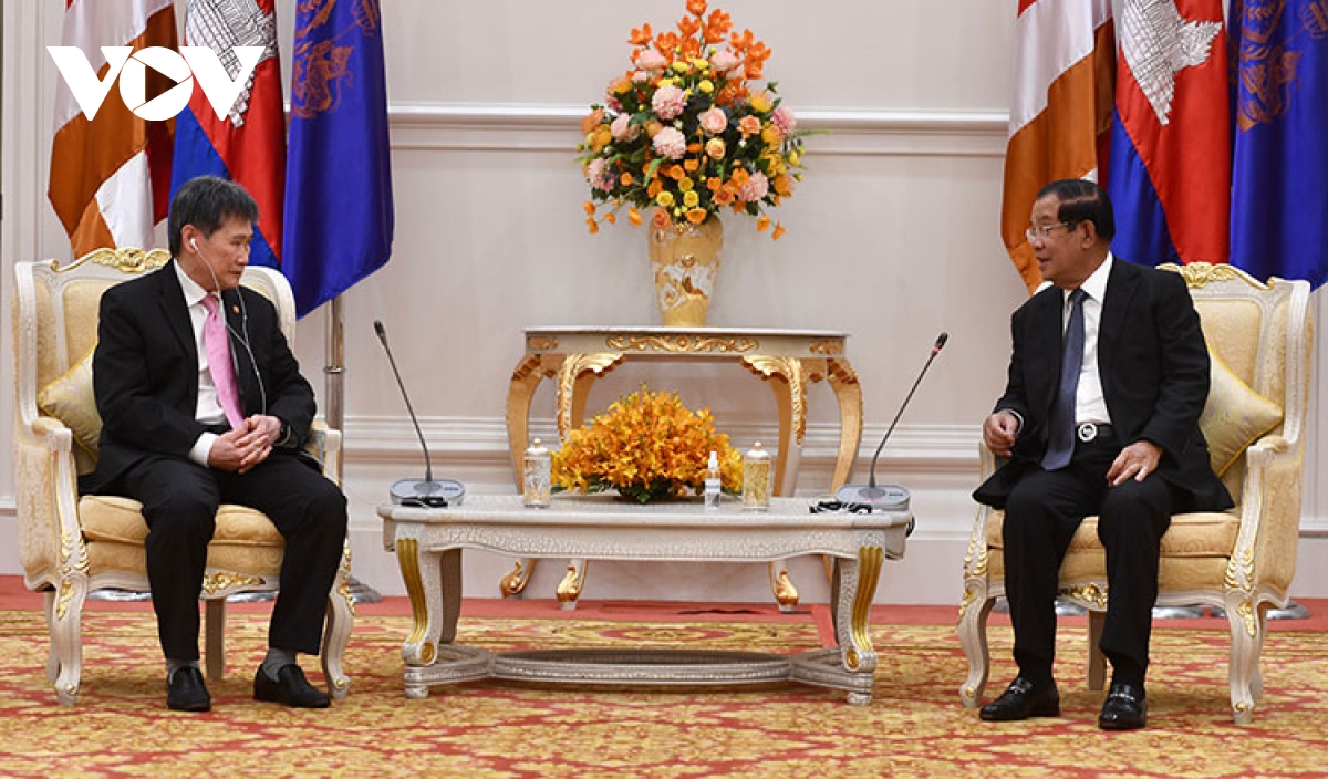 ທ່ານເລຂາທິການໃຫຍ່ ອາຊຽນ Dato Lim Jock Hoi ພົບປະ ແລະ ເຮັດວຽກກັບທ່ານນາຍົກລັດຖະມົນຕີ ກຳປູເຈຍ Hun Sen (ພາບ: VOV) |