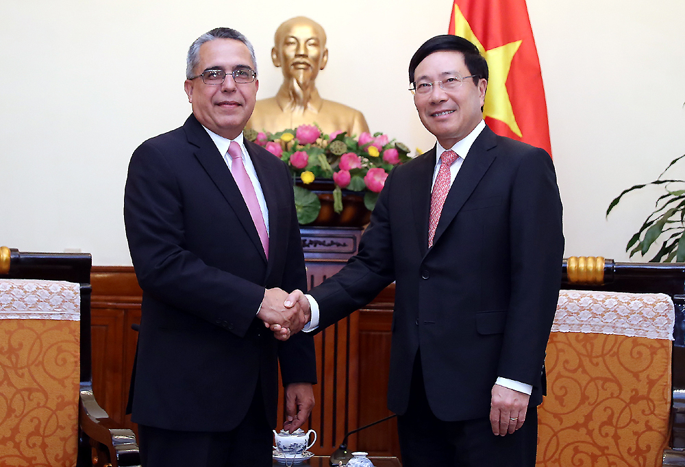 ແລະກໍ່ໃນວັນດຽວກັນ, ທ່ານຮອງນາຍົກລັດຖະມົນຕີ, ລັດຖະມົນຕີກະຊວງການຕ່າງປະເທດ ຫວຽດນາມ ຟ້າມບີງມິງ ໃຫ້ການຕ້ອນຮັບທ່ານ Marcelino Medina Gonzalez ຮອງລັດຖະມົນຕີຜູ້ທີ 1 ກະຊວງການຕ່າງປະເທດ ກູບາ ທີ່ພວມຢ້ຽມຢາມ ຫວຽດນາມ ຢ່າງເປັນທາງການ.