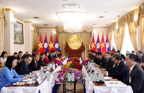 ທີ່ການພົບປະເຈລະຈາ, ທ່ານນາງຮອງປະທານປະເທດ ຫວຽດນາມ ດັ້ງທິງັອກທິ້ງ ແລະ ທ່ານຮອງປະທານປະເທດ ພັນຄຳ ວິພາວັນ ໄດ້ເຫັນດີເປັນເອກະພາບຕໍ່ເລື່ອງ ຈະເອົາໃຈໃສ່ສຶກສາອົບຮົມນ້ຳໃຈສາມັກຄີລະຫວ່າງຫວຽດນາມ-ລາວ ໃຫ້ແກ່ພະນັກງານ ແລະ ປະຊາຊົນສອງປະເທດໃຫ້ດີຍິ່ງກວ່າອີກ, ໂດຍສະເພາະແມ່ນໄວໜຸ່ມ; ສືບຕໍ່ເພີ່ມທະວີການຮ່ວມມືໃນວຽກງານປ້ອງກັນຄວາມສະຫງົບຢູ່ເຂດຊາຍແດນໃຫ້ແໜ້ນແຟ້ນ, ສະກັດກັ້ນສະພາບການຄ້າມະນຸດ, ການຄ້າຂາຍຢາເສບຕິດຢ່າງຜິດກົດໝາຍ, ການຄ້າເຖື່ອນ, ຂຸດຄົ້ນຊັບພະຍາກອນທຳມະຊາດຢ່າງຜິດກົດໝາຍຢູ່ລຽບຕາມເສັ້ນຊາຍແດນ, ກໍ່ສ້າງເສັ້ນຊາຍແດນຫວຽດນາມ- ລາວໃຫ້ມີສັນຕິພາບ, ມິດຕະພາບ ແລະ ພັດທະນາ; ກວດກາ, ຊຸກຍູ້ການຜັນຂະຫຍາຍບັນດາໂຄງການ ທີ່ວິສາຫະກິດຫວຽດນາມໄດ້ຮັບໜັງສືອະນຸຍາດໃຫ້ລົງທຶນຢູ່ລາວ ຢ່າງມີປະສິດທິຜົນ ແລະ ແທດຈິງ.