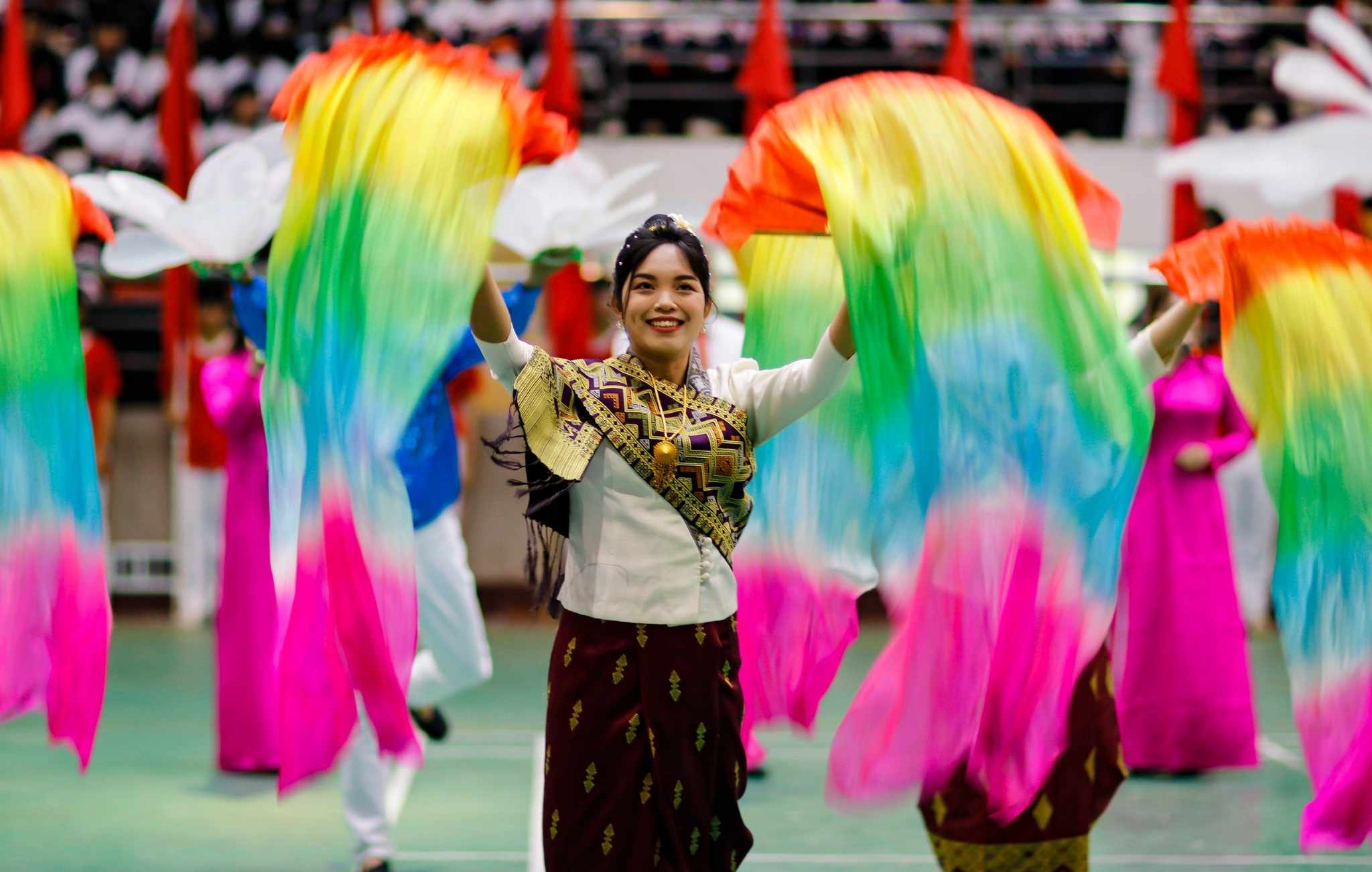 ນັກຮຽນລາວສະແດງສິລະປະທີ່ລາຍການ |