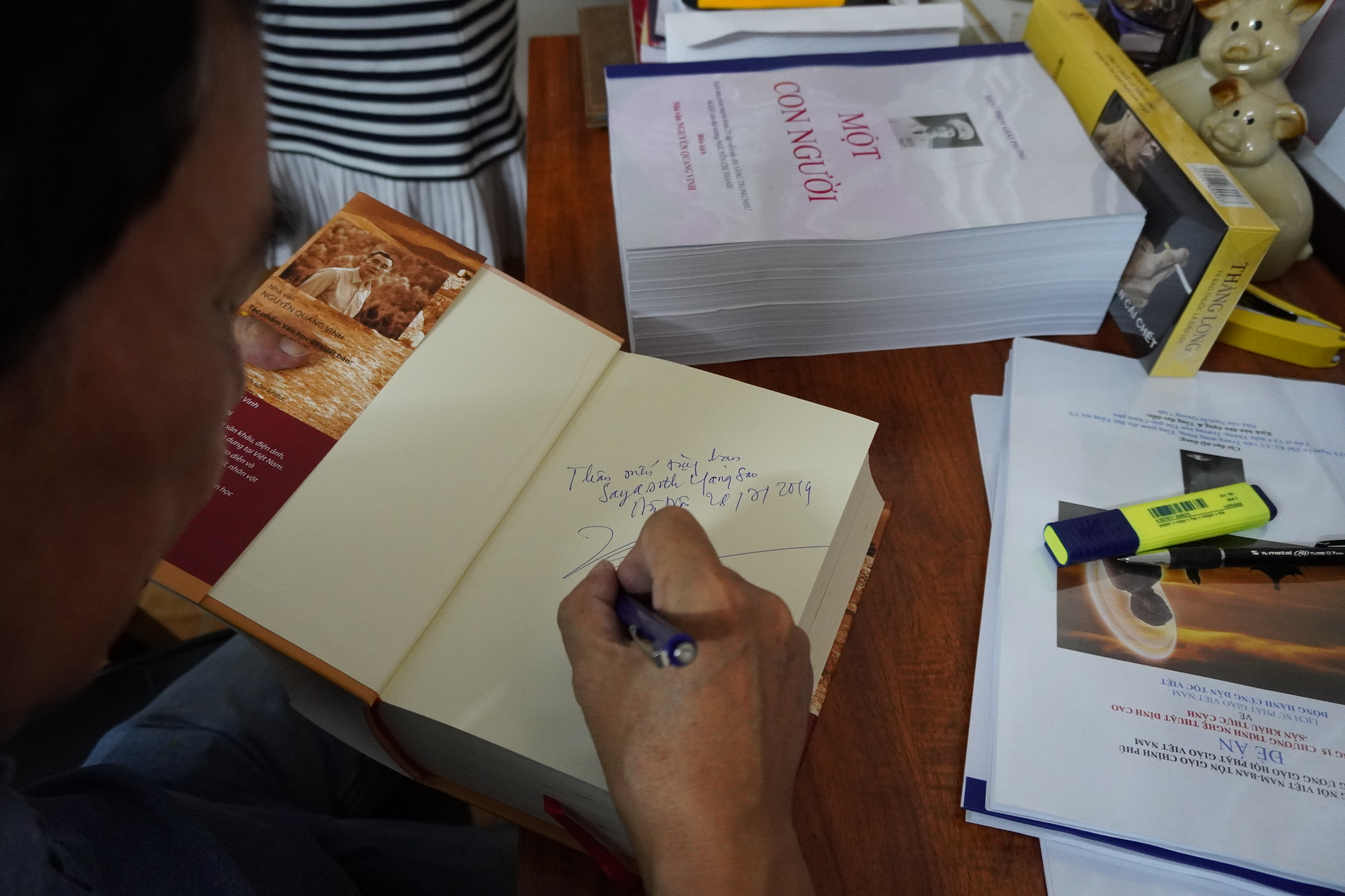 ນັກປະພັນວັນນະຄະດີ ຫງວຽນກວາງວິງ ເຊັນມອບປຶ້ມໃຫ້ທ່ານຜູ້ຟັງລາຍການພາກພາສາ ລາວ |