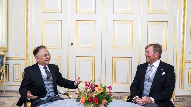 ເຈົ້າຊີວິດໂຮນລັງ Willem-Alexander ແລະ ທ່ານເອກອັກຄະລັດຖະທູດ ຜູ້ມີອຳນາດເຕັມແຫ່ງ ສສ. ຫວຽດນາມ ປະຈຳ ລາຊະອານາຈັກ ໂຮນລັງ (ພາບ: baoquocte.vn) |