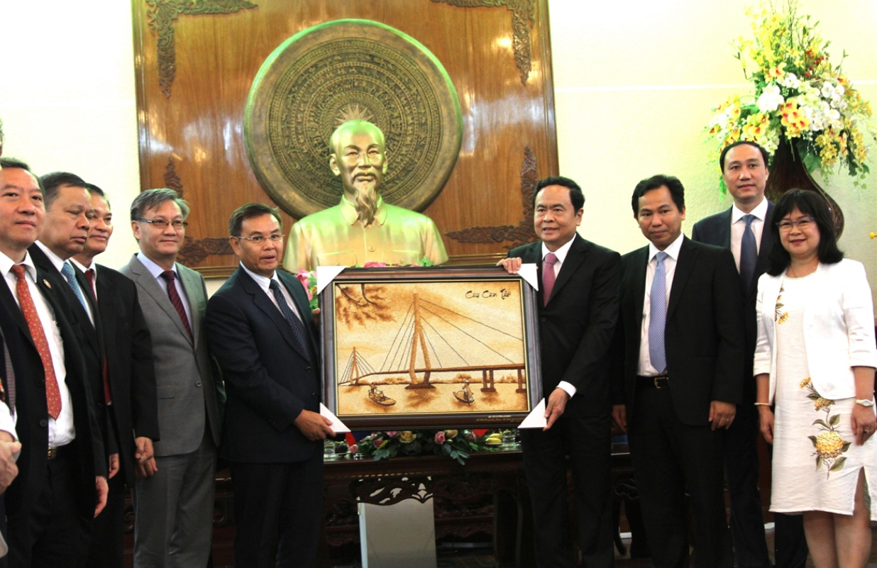 ວັນທີ 22 ມິຖຸນາ, ຢູ່ນະຄອນ ເກິ່ນເທີ, ທ່ານ ເຈິ່ນແທັງເໝິນ ປະທານຄະນະກຳມະການສູນກາງແນວໂຮມປະເທດຊາດ ຫວຽດນາມ ໄດ້ເຮັດວຽກກັບຄະນະຜູ້ແທນຂັ້ນສູງຂອງຄະນະກຳມະການສູນກາງແນວລາວສ້າງຊາດ ໂດຍທ່ານ ໄຊສົມພອນ ພົມວິຫານ, ປະທານຄະນະກຳມະການສູນກາງແນວລາວສ້າງຊາດ ເປັນຫົວໜ້າຄະນະ, ເນື່ອງໃນໂອກາດມາຢ້ຽມຢາມ ແລະ ເຮັດວຽກຢູ່ ນະຄອນເກິ່ນເທີ ເພື່ອ ແນໃສ່ຊອກຮູ້ບົດຮຽນການພັດທະນາກະສິກຳຂອງນະຄອນ ເກິ່ນເທີ ແລະ ເຂດທົ່ງພຽງແມ່ນ້ຳຂອງທາງພາກໃຕ້ ຫວຽດນາມ.