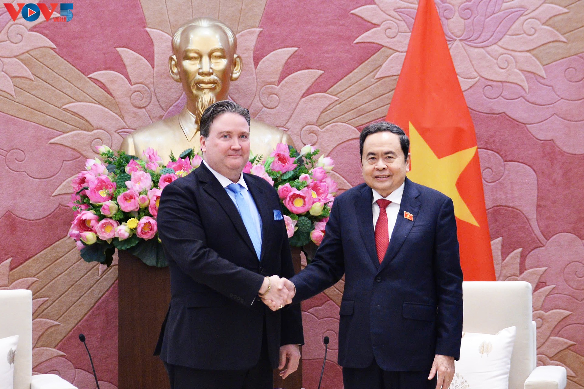ທ່ານປະທານສະພາແຫ່ງຊາດ ຫວຽດນາມ ເຈິ່ນແທັງເໝິນ ຕ້ອນຮັບທ່ານ Marc Knapper ເອກອັກຄະລັດຖະທູດ ອາເມລິກາ ປະຈຳ ຫວຽດນາມ |