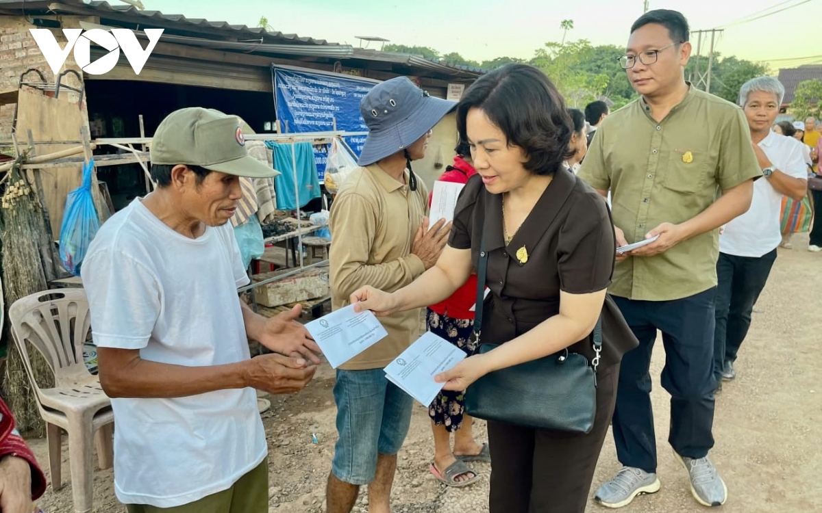 ສະຖານກົງສູນໃຫຍ່ ຫວຽດນາມ ປະຈຳ ຫຼວງພະບາງ ໄດ້ຮຽກຮ້ອງປະຊາຄົມຊາວ ຫວຽດນາມ ທີ່ພວມດຳລົງຊີວິດ, ເຮັດວຽກຢູ່ ລາວ, ນັກທຸລະກິດ ຫວຽດນາມ, ພ້ອມກັບອົງການຜູ້ຕາງໜ້າ ຫວຽດນາມ ປະຈຳພາກເໜືອຂອງ ລາວ ພ້ອມກັນຮ່ວມແຮງຮ່ວມໃຈ, ໜູນຊ່ວຍ, ຊ່ວຍເຫຼືອພໍ່ແມ່ປະຊາຊົນ ຫວຽດນາມ ພວມດຳລົງຊີວິດ, ທຳມາຫາກິນຢູ່ ລາວ ແລະ ປະຊາຊົນ ລາວ ຖືກຜົນສະທ້ອນຍ້ອນພາຍຸກໍ່ຂຶ້ນ. ຈຳນວນເງິນແຜ່ບໍລິຈາກໄດ້ມອບໃຫ້ 500 ຄອບຄົມຢູ່ແຂວງ ຫຼວງນ້ຳທາ ຖືກເສຍຫາຍຢ່າງໜັກໜ່ວງຍ້ອນພາຍຸ, ນ້ຳຖ້ວມ, ແຕ່ລະຄອບຄົວແມ່ນ 1 ລ້ານກີບ.