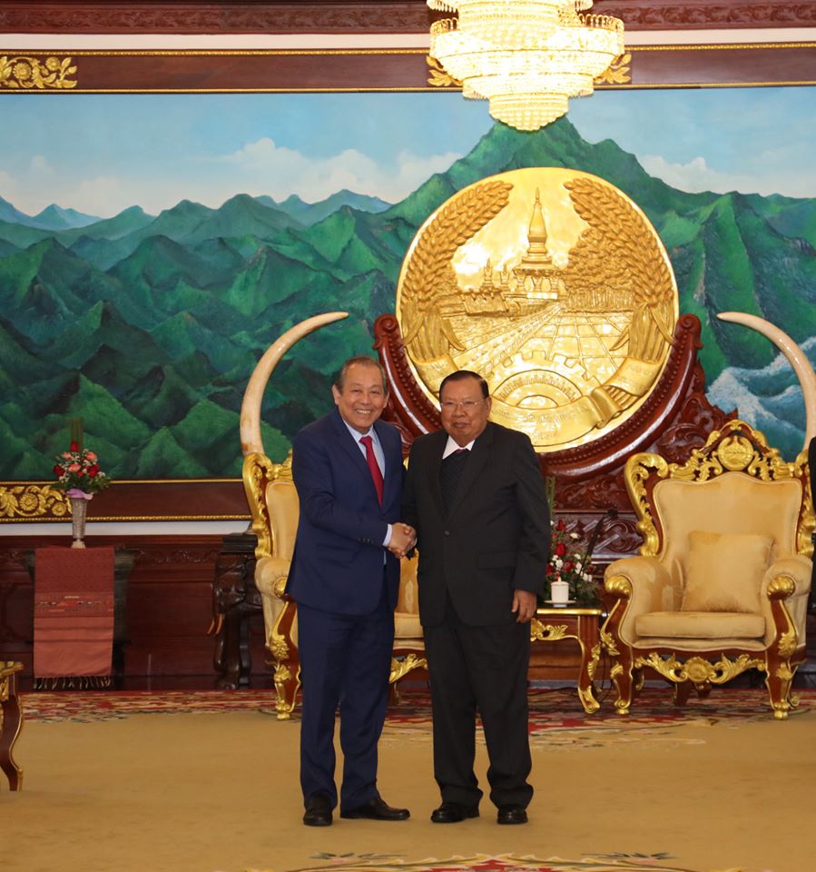 ທ່ານ ບຸນຍັງ ວໍລະຈິດ ປະທານປະເທດ ແຫ່ງ ສປປ ລາວ ໄດ້ຕ້ອນຮັບການເຂົ້າຢ້ຽມຂໍ່ານັບຂອງທ່ານ ເຈືອງ ຮ່ວາ ບີ່ງ ຮອງນາຍົກລັດຖະມົນຕີ ຜູ້ປະຈຳການລັດຖະບານ ແຫ່ງ ສສ.ຫວຽດນາມ (ພາບ: ຂປລ) |
