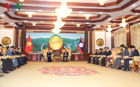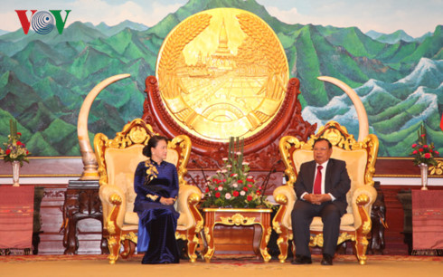 ທ່ານນາງປະທານສະພາແຫ່ງຊາດຫວຽດນາມ ຫງວຽນທິກິມເງິນ ແລະ ຸທ່ານເລຂາທິການໃຫຍ່, ປະທານປະເທດລາວ ບຸນຍັງ ວໍລະຈິດ |