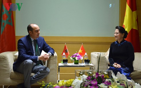 ແລະກໍໍ່ໃນວັນທີ 19 ມັງກອນ, ທີ່ຮ່າໂນ້ຍ, ທ່ານນາງປະທານສະພາແຫ່ງຊາດ ຫວຽດນາມ ຫງວຽນທິກິມເງິນ ໄດ້ໃຫ້ການຕ້ອນຮັບ 2 ຮອງປະທານສະພາຕ່ຳລາຊະອານາຈັກ ມາຣົກ ທ່ານ Mohammed Ouzzine ແລະ ທ່ານນາງ Amina Mealainine.