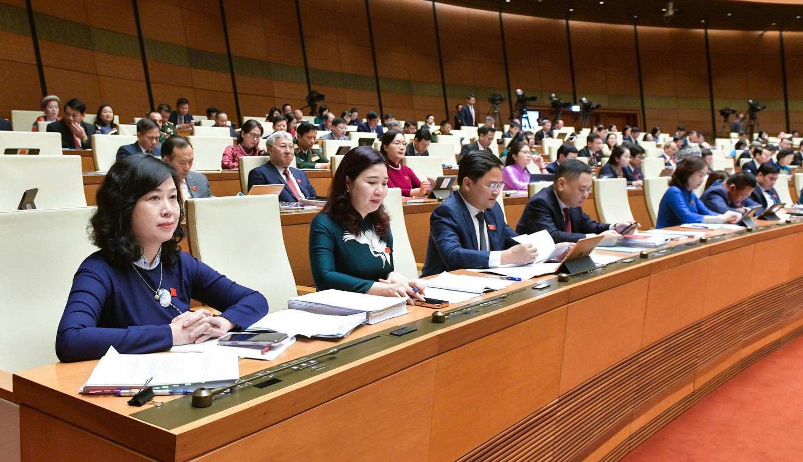 ບັນດາສະມາຊິກສະພາແຫ່ງຊາດປຶກສາຫາລື, ປະກອບຄຳເຫັນໃສ່ຮ່າງກົດໝາຍ (ພາບ:quochoi.vn) |