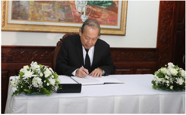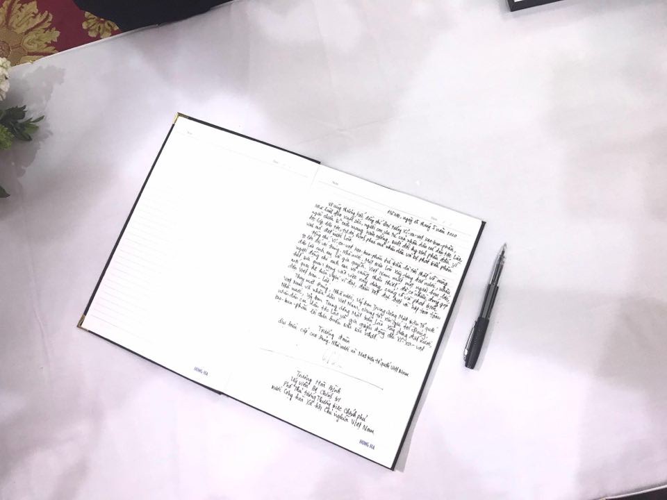 ພາຍຫຼັງພິທີໄວ້ອາໄລ, ທ່ານ ເຈືອງຮ່ວາບິ່ງໄດ້ຂຽນໃສ່ປຶ້ມໄວ້ອາໄລດ້ວຍເນື້ອໃນວ່າ: