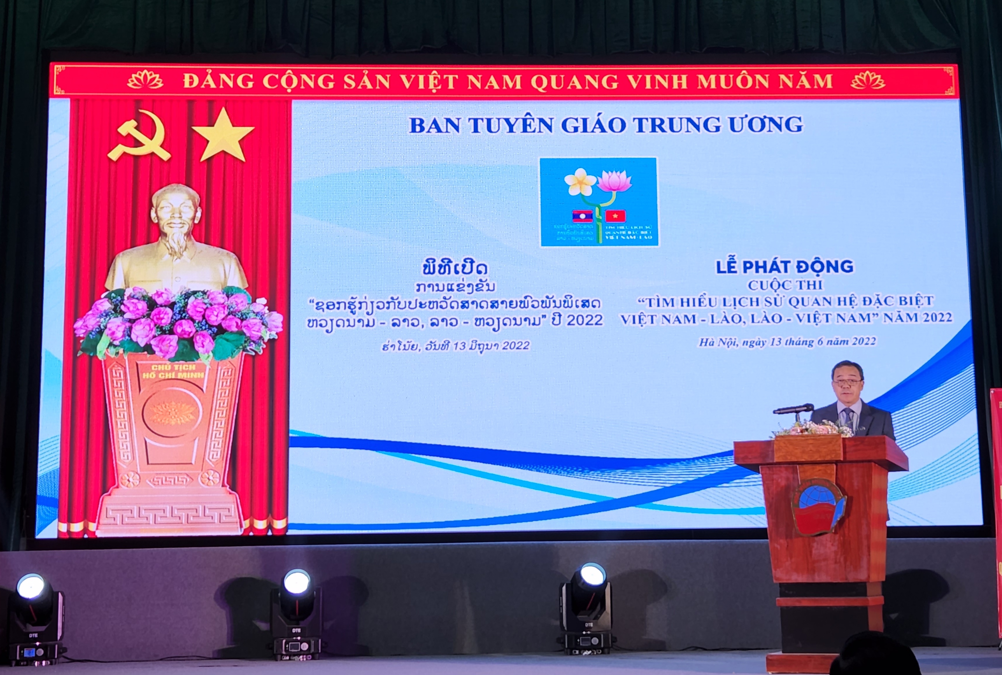 ການແຂ່ງຂັນເພື່ອແນ່ໃສ່ສະເຫຼີມສະຫຼອງ 60 ປີແຫ່ງວັນສ້າງຕັ້ງສາຍພົວພັນທາງການທູດ (5/9/1962-5/9/2022) ແລະ 45 ປີແຫ່ງວັນເຊັນສົນທິສັນຍາມິດຕະພາບ ແລະ ການຮ່ວມມືລະຫວ່າງ ຫວຽດນາມ-ລາວ, ລາວ-ຫວຽດນາມ (18/7/1977-18/7/2022). ກ່າວຄຳເຫັນທີ່ພິທີ, ທ່ານເຈິນຢ້ວານຕຽນ, ຫົວໜ້າບັນນາທິການສື່ເອເລກໂຕນິກພັກກອມມູນິດຫວຽດນາມ, ຮອງຫົວໜ້າປະຈຳຄະນະຈັດຕັ້ງການສອບເສັງ ໃຫ້ຮູ້ວ່າ: