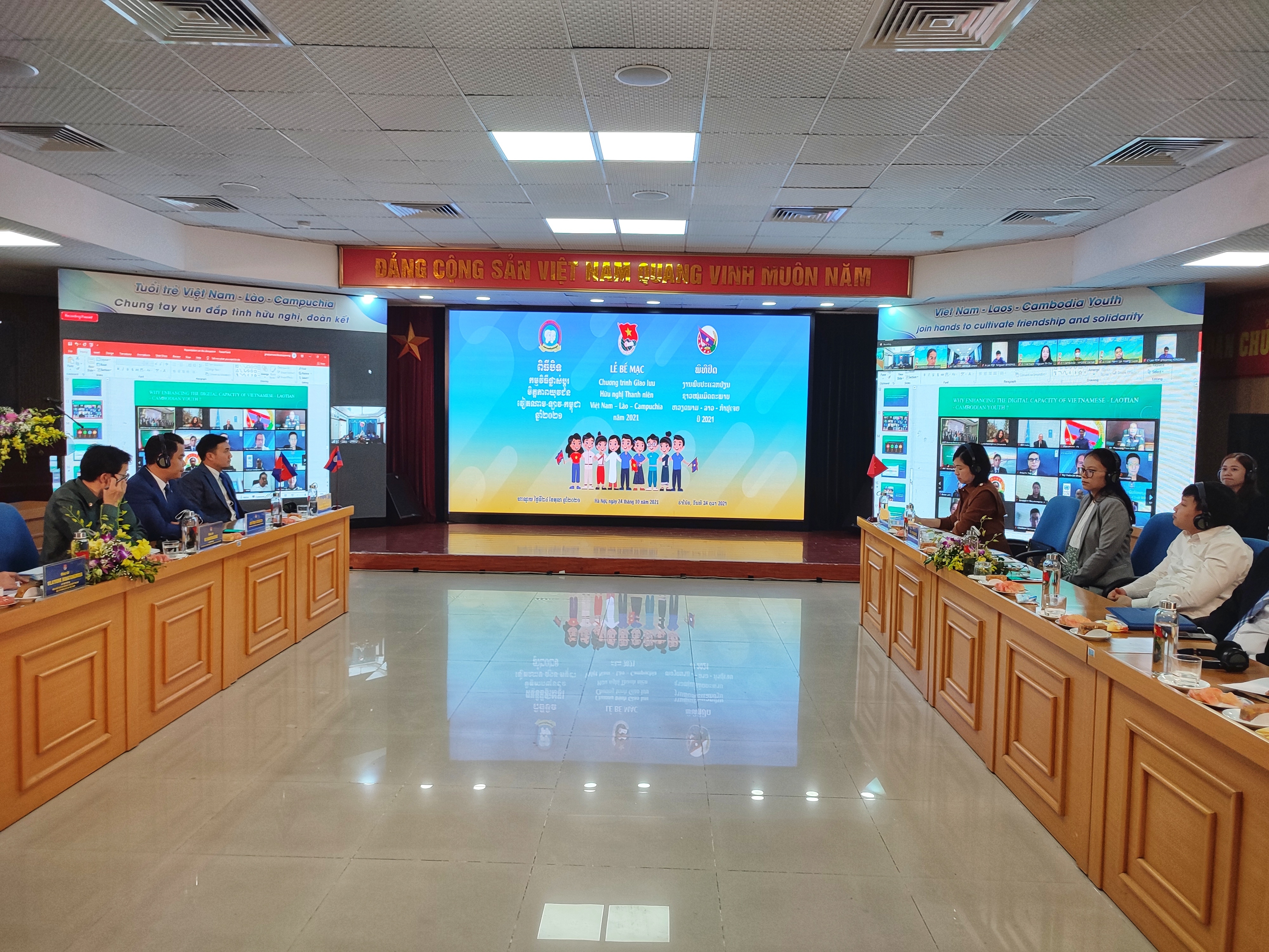 (VOVWORLD) - ໃນໄລຍະເວລາສອງວັນ ແຕ່ວັນທີ 22 – 23 ຕຸລາ, ຜູ້ແທນ 65 ທ່ານ ເຊິ່ງເປັນຊາວໜຸ່ມ, ນັກສຶກສາຜູ້ດີເດັ່ນຂອງ 3 ປະເທດ ຫວຽດນາມ - ລາວ - ກຳປູເຈຍ ໄດ້ພ້ອມກັນແບ່ງປັນປະສົບການຕົວຈິງ, ແລກປ່ຽນ, ປຶກສາຫາລືກ່ຽວກັບ 3 ຫົວຂໍ້: ໄວໜຸ່ມ ຫວຽດນາມ - ລາວ - ກຳປູເຈຍ ຮ່ວມແຮງຮ່ວມໃຈເພີ່ມພູນຄູນສ້າງສາຍພົວພັນໄມຕີຈິດມິດຕະພາບ, ຄວາມສາມັກຄີ; ຊາວໜຸ່ມ ຫວຽດນາມ - ລາວ - ກຳປູເຈຍ ປະຈັນບານ, ອາສາສະໝັກເຂົ້າຮ່ວມວຽກງານປ້ອງກັນ, ຕ້ານໂລກລະບາດ ໂຄວິດ - 19, ເພື່ອການຊ່ວຍໜູນສັງຄົມ; ຍົກສູງກຳລັງຄວາມສາມາດນຳໃຊ້ເຕັກໂນໂລຢີດີຈີຕອນໃຫ້ແກ່ຊາວໜຸ່ມ ຫວຽດນາມ - ລາວ - ກຳປູເຈຍ.
