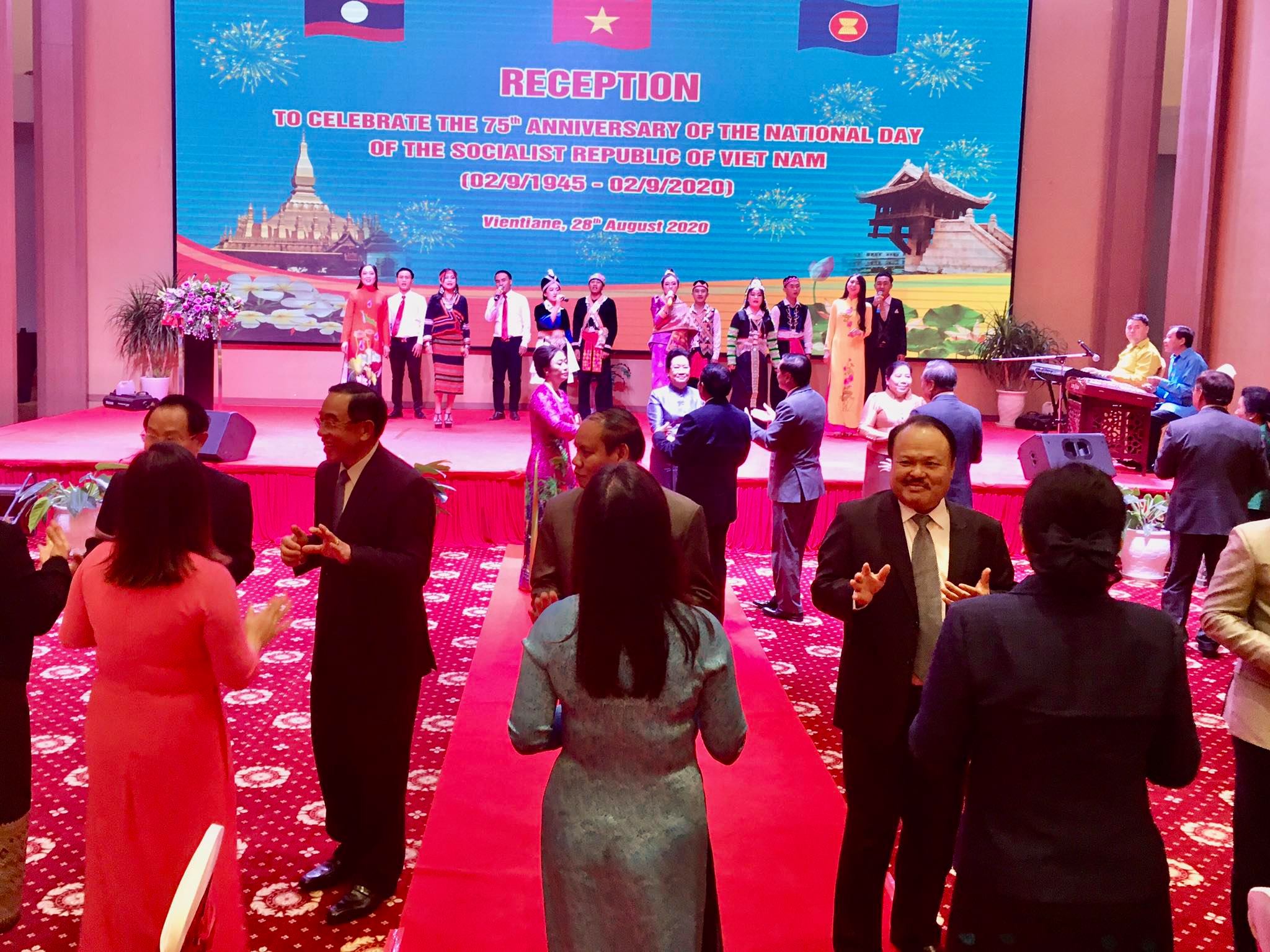 ໃນວັນດຽວກັນ, ຢູ່ນະຄອນຫຼວງວຽງຈັນ, ສະຖານທູດຫວຽດນາມ ປະຈຳລາວ ໄດ້ຈັດງານລ້ຽງເພື່ອສະເຫຼີມສະຫຼອງວັນຊາດຫວຽດນາມ ຄົບຮອບ 75 ປີ. ກ່າວຄຳເຫັນນະທີ່ນີ້, ທ່ານເອກອັກຄະລັດຖະທູດ ຫງວຽນບາຮຸ່ງ ປາດຖະໜາວ່າ ບັນດາປະເທດ, ເພື່ອນມິດສາກົນຈະສືບຕໍ່ສະໜັບສະໜູນ ເພື່ອໃຫ້ສາຍພົວພັນລະຫວ່າງຫວຽດນາມ-ລາວ ພັດທະນາຢ່າງໝັ້ນຄົງ, ປະກອບສ່ວນຢ່າງຕັ້ງໜ້າໃຫ້ແກ່ສັນຕິພາບ, ສະຖຽນລະພາບ, ຄວາມສະຫງົບປອດໄພ ແລະ ການພັດທະນາຢູ່ອາຊີ.