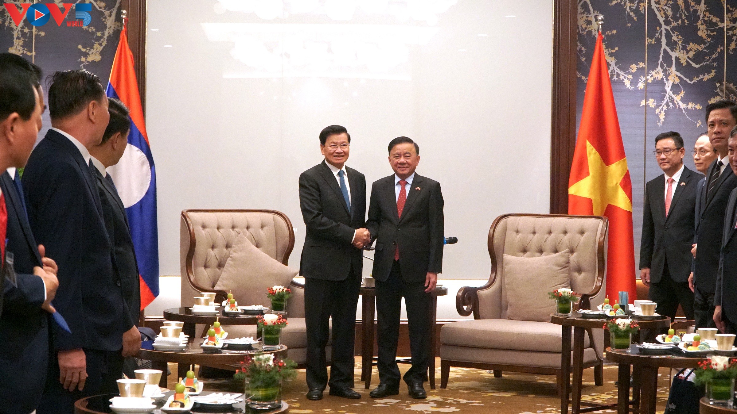 ທ່ານ ເຈິ່ນເກີມຕູ໊ ກຳມະການກົມການເມືອງ, ຜູ້ປະຈຳການຄະນະເລຂາທິການສູນກາງພັກ ແລະ ທ່ານເລຂາທິການໃຫຍ່, ປະທານປະເທດລາວ ທອງລຸນ ສີສຸລິດ