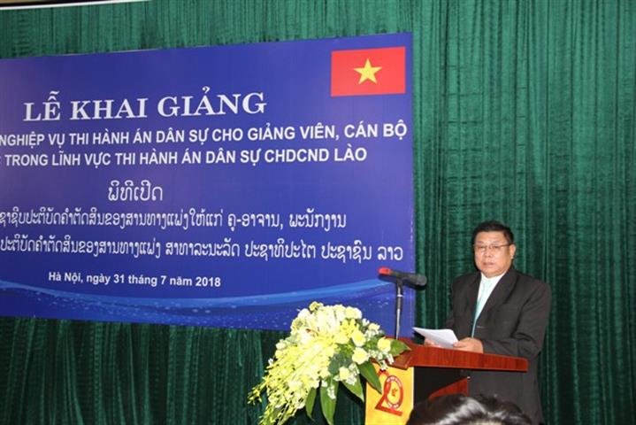 “ສະຖານບັນຍຸດຕິທຳຫວຽດນາມ ມີຄວາມເປັນກຽດ ແລະ ມີຄວາມເອກອ້າງທະນົງໃຈເມື່ອໄດ້ຮັບມອບສິດຈາກກະຊວງຍຸຕິທຳຫວຽດນາມ ເປັນຫົວໜ່ວຍປະຕິບັດໂຄງການໜູນຊ່ວຍສະຖາບັນຍຸຕິທຳລາວ. ບົນພື້ນຖານບັນດາບົດຮຽນທີ່ສະສົມໄວ້ໄດ້ໃນປະຫວັດສາດ 20 ປີແຫ່ງການກໍ່ສ້າງ ແລະ ພັດທະນາ. ສະຖາບັນຍຸຕິທຳຫວຽດນາມ ໄດ້ຕັ້ງໜ້າ, ເປັນເຈົ້າການເປີດບັນດາຊຸດເຝິກອົບຮົມໃຫ້ແກ່ຄູອາຈານ, ພະນັກງານຍຸຕິທຳລາວ. ພິທີໄຂຊຸດເຝິກອົບຮົມວິຊາຊີບມື້ນີ້ແມ່ນໜຶ່ງໃນບັນດາໝາກຜົນເບື້ອງຕົ້ນໃຫ້ແກ່ຄວາມມານະພະຍາຍາມຜັນຂະຫຍາຍປະສິດທິຜົນບັນດາການເຄື່ອນໄຫວຂອງໂຄງການ”.