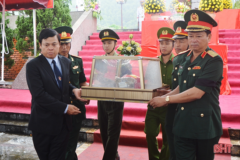 ເຂົ້າຮ່ວມພິທີດັ່ງກ່າວມີຜູ້ຕາງໜ້າຄະນະປະຕິບັດງານພິເສດຂອງລັດຖະບານ, ກອງບັນຊາການທະຫານເຂດ 4, ການນຳນະຄອນຫຼວງວຽງຈັນ, ແຂວງບໍລິຄຳໄຊຂອງລາວ, ການນຳແຂວງຮ່າຕິ້ງ ພ້ອມດ້ວຍພະນັກງານ, ປະຊາຊົນ, ຍາດຕິພີ່ນ້ອງຂອງນັກຮົບເສຍສະຫຼະຊີວິດເພື່ອຊາດເປັນຈຳນວນຫຼວງຫຼາຍ.