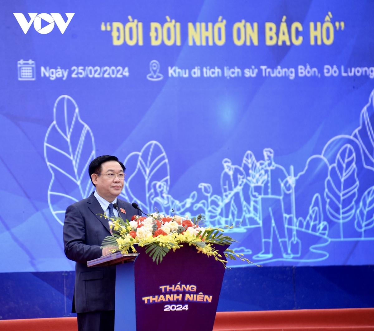 ເຂົ້າຮ່ວມ ແລະ ກ່າວຄຳເຫັນທີ່ພິທີ, ທ່ານປະທານສະພາແຫ່ງຊາດ ຫວຽດນາມ ເວືອງດິ່ງເຫ້ວ ໄດ້ຕີລາຄາສູງເລື່ອງ ສູນກາງຊາວໜຸ່ມກອມມູນິດ ໂຮ່ຈີມິນ ໄດ້ເລືອກເອົາຫົວຂໍ້ເພື່ອປະຕິບັດງານປີ 2024 ແມ່ນ “ປີຊາວໜຸ່ມອາສາສະໝັກ” ກຳນົດເຈົ້າກຳເດືອນຊາວໜຸ່ມປີ 2024 ແມ່ນ “ຊາວໜຸ່ມປະຈັນບານອາສາສະໝັກເພື່ອການດຳລົງຊີວິດປະຊາຄົມ”. ທ່ານປະທານສະພາແຫ່ງຊາດ ຮຽກຮ້ອງໃຫ້ຄະນະຊາວໜຸ່ມທຸກຂັ້ນ ມີການປ່ຽນແປງໃໝ່ຢ່າງບໍ່ຢຸດຢັ້ງ, ປະດິດຄິດສ້າງໃນການເລືອກເອົາເນື້ອໃນ, ຈັດບັນດາການເຄື່ອນໄຫວໃນເດືອນຊາວໜຸ່ມ, ຈານນັ້ນ, ສືບຕໍ່ພັດທະນາບັນດາການເຄື່ອນໄຫວໃຫ້ນັບມື້ນັບແທດຈິງ, ມີປະສິດທິຜົນ.