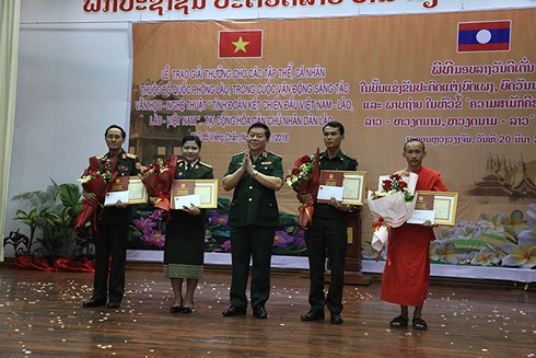 ບັ້ນແຂ່ງຂັນດັ່ງກ່າວ ໄດ້ດຶງດູດເກືອບ 800 ຄົນເຂົ້າຮ່ວມ ດ້ວຍ 1.700 ບົດປະພັນວັນນະຄະດີ, ບົດເພງ, ວິຈິດສິນ, ພາບຖ່າຍ ແລະ ຟີມເອກະສານ. ຄະນະຈັດຕັ້ງໄດ້ມອບ 133 ລາງວັນໃຫ້ບັນດານັກແຕ່ງທີ່ມີບົດປະພັນດີເດັ່ນຂອງສາມປະເທດ. ພົນຈັດຕະວາ ວັນທອງ ກອງມະນີ, ຮອງຫົວຫນ້າກົມໃຫຍ່ການເມືອງກອງທັບ ລາວ ໃຫ້ຮູ້ວ່າ: ພິທີມອບລາງວັນຄັ້ງນີ້ແມ່ນນອນໃນຂອບເຂດປີສາມັກຄີມິດຕະພາບຫວຽດນາມ - ລາວ, ນີ້ແມ່ນການເຄື່ອນໄຫວສະແດງໃຫ້ເຫັນຈິດໃຈ “ກິນເຂົ້າຄິດຮອດຄຸນນາ ກິນປາຄິດຮອດຄຸນນ້ຳ”ຂອງປະຊາຊົນ, ກອງທັບສອງປະເທດ ລາວ ແລະຫວຽດນາມ. ບັນດາບົດເພງ, ບົດກາບກອນ, ພາບແຕ້ມ, ພາບຖ່າຍທີ່ສວຍງາມ ແລະ ມີຊີວິດຊີວາເຫຼົ່ານັ້ນ ລ້ວນແຕ່ສະແດງໃຫ້ເຫັນຄວາມສາມັກຄີມິດຕະພາບທີ່ເປັນມູນເຊື້ອ, ຄວາມຮັກແພງບໍລິສຸດຜຸດຜ່ອງຂອງສອງພັກ, ສອງກອງທັບ, ປະຊາຊົນສອງຊາດພວກເຮົາໃນຕະຫຼອດໄລຍະຕໍ່ສູ້ປະຕິວັດປົດປ່ອຍປະເທດຊາດ ກໍຄືໃນໄລຍະສ້າງສາ ແລະ ປົກປັກຮັກສາປະເທດຊາດໃນປັດຈຸບັນ”.