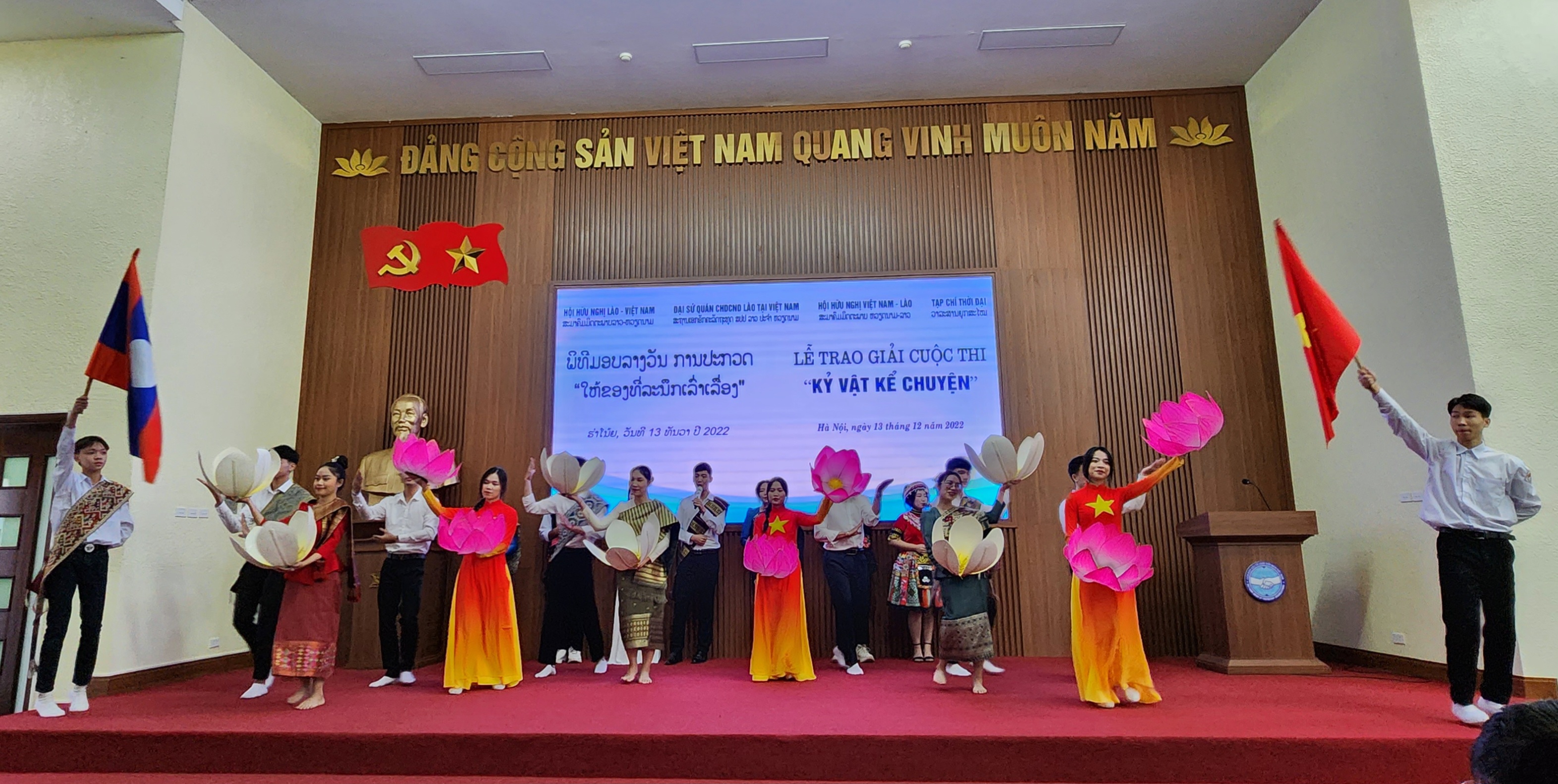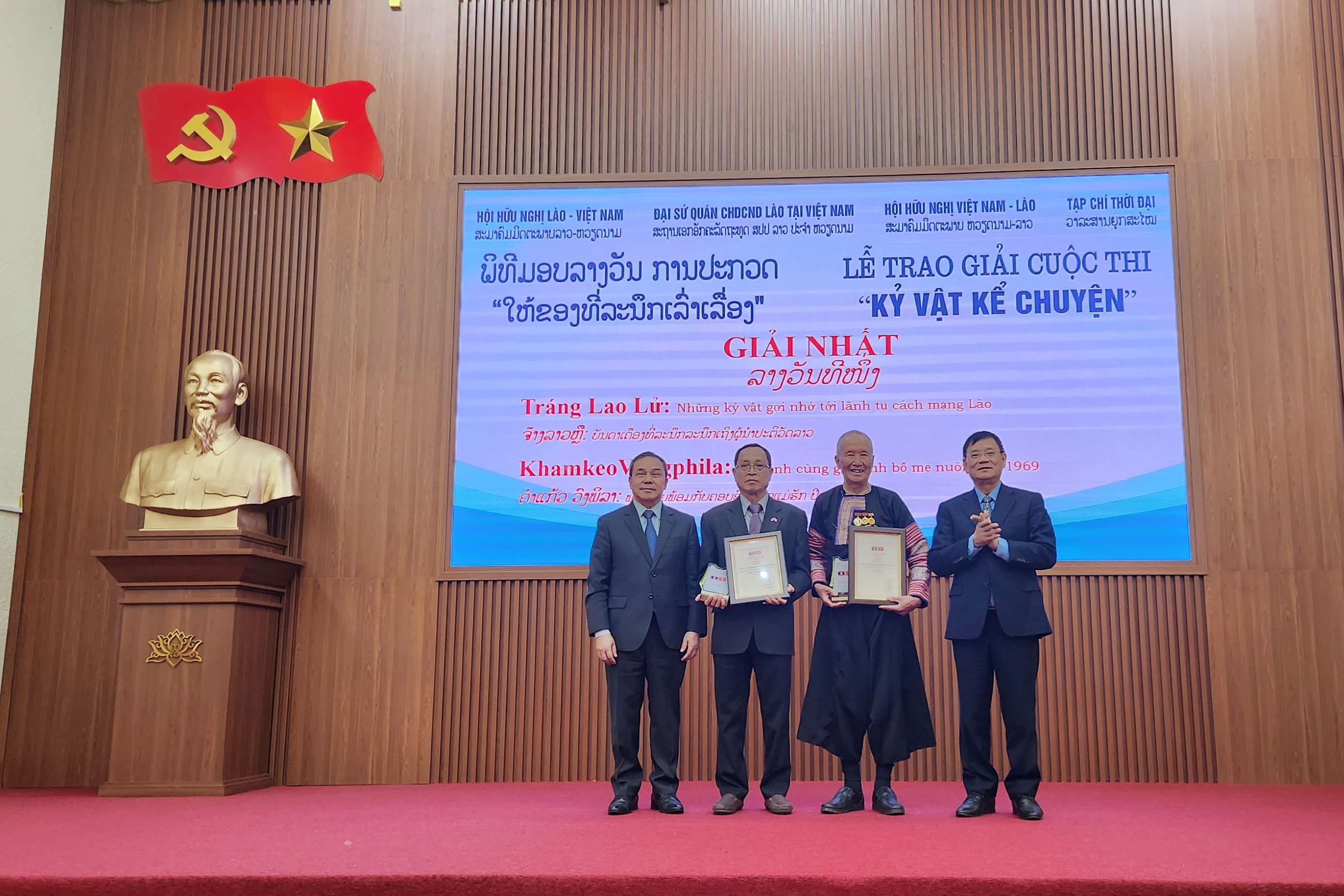 ຕອນເຊົ້າວັນທີ 13 ທັນວາ, ຢູ່ຮ່າໂນ້ຍ, ວາລະສານຍຸກສະໄໝ (ອົງການຂອງສະຫະພັນບັນດາອົງການມິດຕະພາບ ຫວຽດນາມ) ສົມທົບກັບສະຖານທູດແຫ່ງ ສປປ ລາວ ປະຈຳ ສສ ຫວຽດນາມ, ສະມາຄົມມິດຕະພາບ ຫວຽດນາມ - ລາວ, ສະມາຄົມມິດຕະພາບ ລາວ - ຫວຽດນາມ ຈັດຕັ້ງພິທີມອບລາງວັນການປະກວດ “ໃຫ້ຂອງທີ່ລະນຶກເລົ່າເລື່ອງ”.