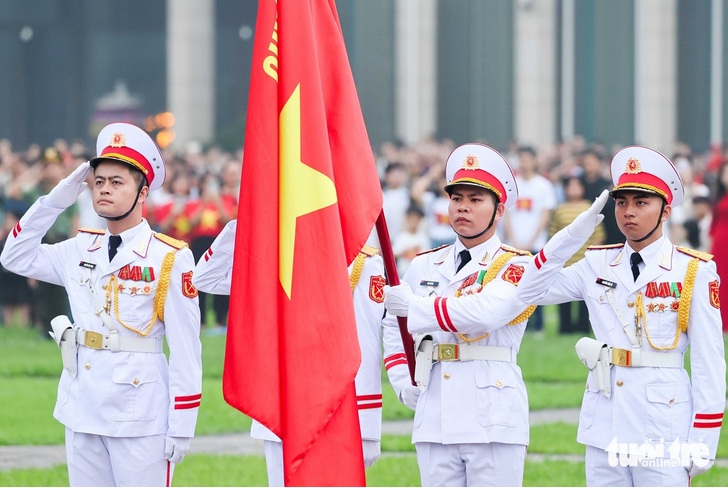 ຕອນເຊົ້າວັນທີ 30 ເມສາ, ພິທີສະເຫຼີມສະຫຼອງ 50 ປີແຫ່ງວັນປົດປ່ອຍພາກໃຕ້ ຫວຽດນາມ, ທ້ອນໂຮມປະເທດຊາດເປັນເອກະພາບ (30 ເມສາ 1975 – 30 ເມສາ 2025), ຈັດຂຶ້ນຢູ່ສະໜາມຫຼວງ ບາດິ່ງ ປະຫວັດສາດ, ໂດຍມີຊາວນະຄອນຫຼວງ ຮ່າໂນ້ຍ ແລະ ແຂກທ່ອງທ່ຽວນັບຮ້ອຍຄົນໄດ້ມາແຕ່ເຊົ້າເພື່ອເຫັນປະຈັກຕາພິທີເຄົາລົບທຸງທີ່ສະຫງ່າຜ່າເຜີຍໃນຄວາມປິຕິຊົມຊື່ນພ້ອມກັນທົ່ວປະເທດ.