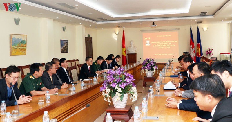 ແລະໃນວັນທີ 03 ກຸມພາ, ສະຖານທູດ ຫວຽດນາມ ປະຈຳ ກຳປູເຈຍ ກໍ່ຈັດຕັ້ງພິທີສະເຫຼີມສະຫຼອງ 90 ປີແຫ່ງວັນສ້າງຕັ້ງພັກກອມມູນິດ ຫວຽດນາມ. ເຂົ້າຮ່ວມພິທີ, ມີທ່ານເອກອັກຄະລັດຖະທູດ ຫວຽດນາມ ປະຈຳ ກຳປູເຈຍ ຫວູກວາງມິງ, ບັນດາສະມາຊິກພັກພວມດຳເນີນຊີວິດຢູ່ບັນດາໜ່ວຍພັກຂຶ້ນກັບອົງຄະນະພັກສະຖານທູດ ຫວຽດນາມ ປະຈຳ ກຳປູເຈຍ, ພ້ອມດ້ວຍພະນັກງານສະຖານທູດ, ອົງການຈັດຕັ້ງອ້ອມຂ້າງສະຖານທູດ ແລະ ບັນດານັກສຶກສາ ຫວຽດນາມ ພວມຮ່ຳຮຽນຢູ່ ກຳປູເຈຍ ເປັນຈຳນວນຫລວງຫລາຍ.