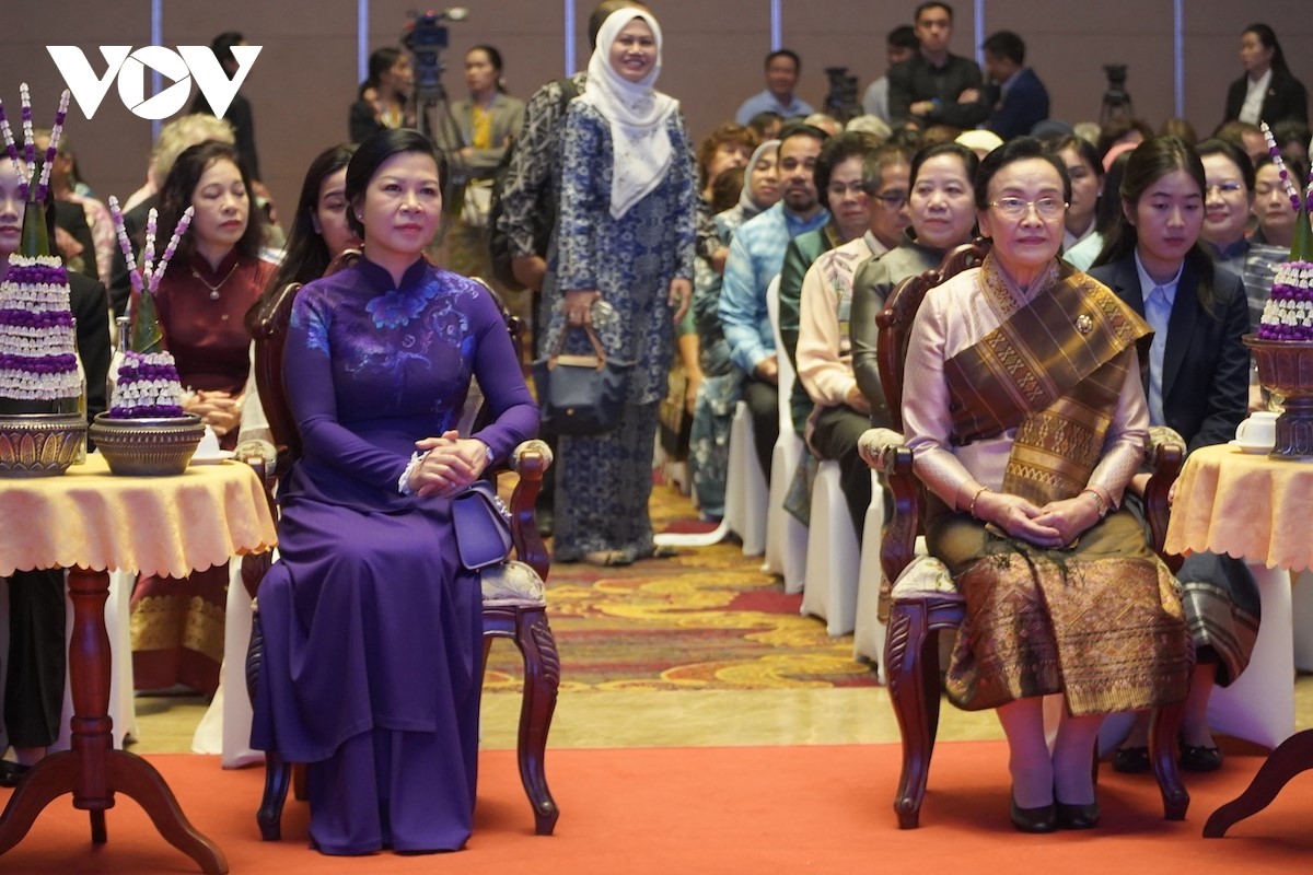 ທ່ານນາງ ນາລີ ສີສຸລິດ, ພັນລະຍາ ສະຫາຍເລຂາທິການໃຫຍ່, ປະທານປະເທດລາວ ທອງລຸນ ສີສຸລິດ ແລະ ທ່ານນາງ ໂງເຟືອງລີ, ພັນລະຍາສະຫາຍເລຂາທິການໃຫຍ່ໂຕເລິມ (ພາບ: VOV) |