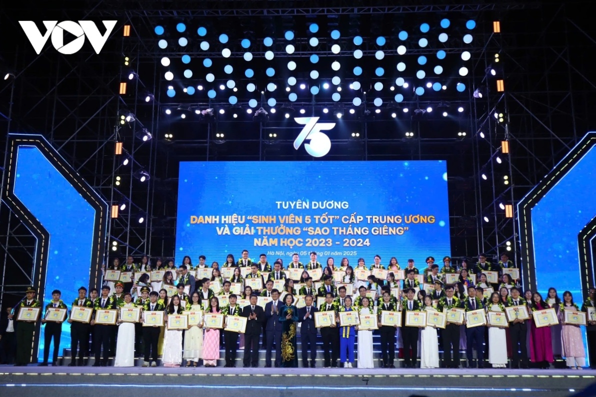 ຕອນຄ່ຳວັນທີ 5 ມັງກອນ, ຢູ່ປະຕູໂຂງຂອງສວນສາທາລະນະ ໂທ້ງເຍິດ, ຮ່າໂນ້ຍ, ສູນກາງຄະນະຊາວໜຸ່ມກອມມູນິດ ໂຮ່ຈີມິນ, ສູນກາງສະມາຄົມນັກສຶກສາ ຫວຽດນາມ ຈັດພິທີສະເຫຼີມສະຫຼອງ 75 ປີແຫ່ງວັນມູນເຊື້ອນັກຮຽນ, ນັກສຶກສາ ແລະ ສະມາຄົມນັກສຶກສາ ຫວຽດນາມ (09/01/1950 – 09/01/2025). ຢູ່ພິທີ, ສູນກາງຄະນະຊາວໜຸ່ມກອມມູນິດໂຮ່ຈີມິນ ແລະ ສູນກາງສະມາຄົມນັກສຶກສາ ຫວຽດນາມ ໄດ້ຍ້ອງຍໍສັນລະເສີນນັກຮຽນ, ນັກສຶກສາດີເດັ່ນຂັ້ນສູນກາງຈຳນວນ 181 ຄົນ.