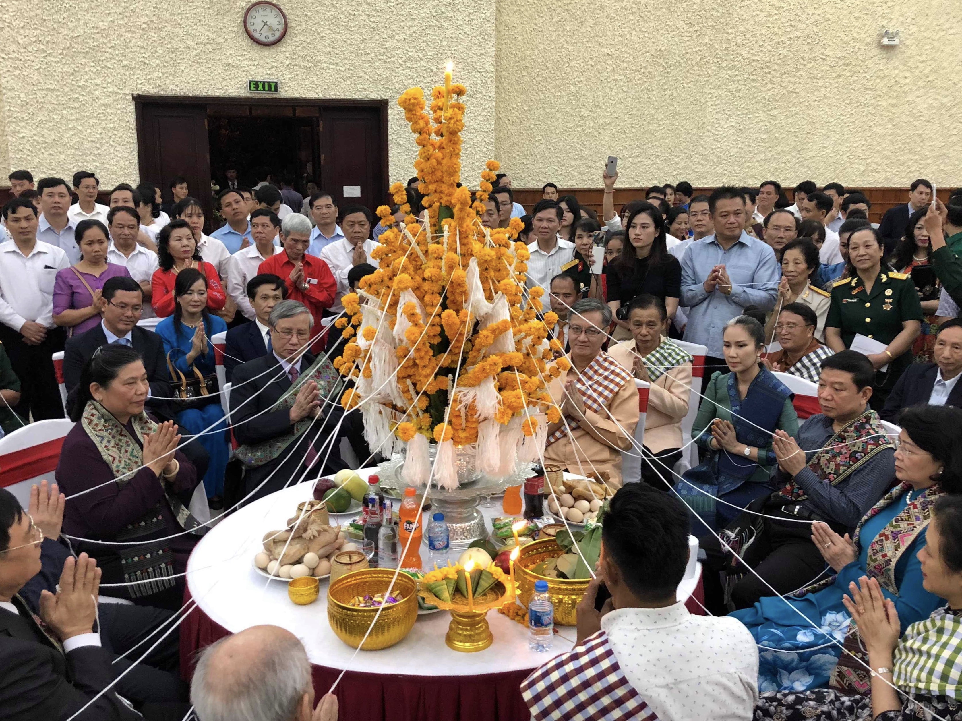 ພາຍຫຼັງກ່າວຄຳເຫັນໄຂພິທີ, ບັນດາ ແຂກຖືກເຊີນໄດ້ພ້ອມກັນເຂົ້າຮ່ວມພິທີບາສີສູ່ຂວັນ, ຟ້ອນລຳວົງ ແລະ ຮັບປະທານອາຫານພື້ນເມືອງ ຂອງ ລາວ.