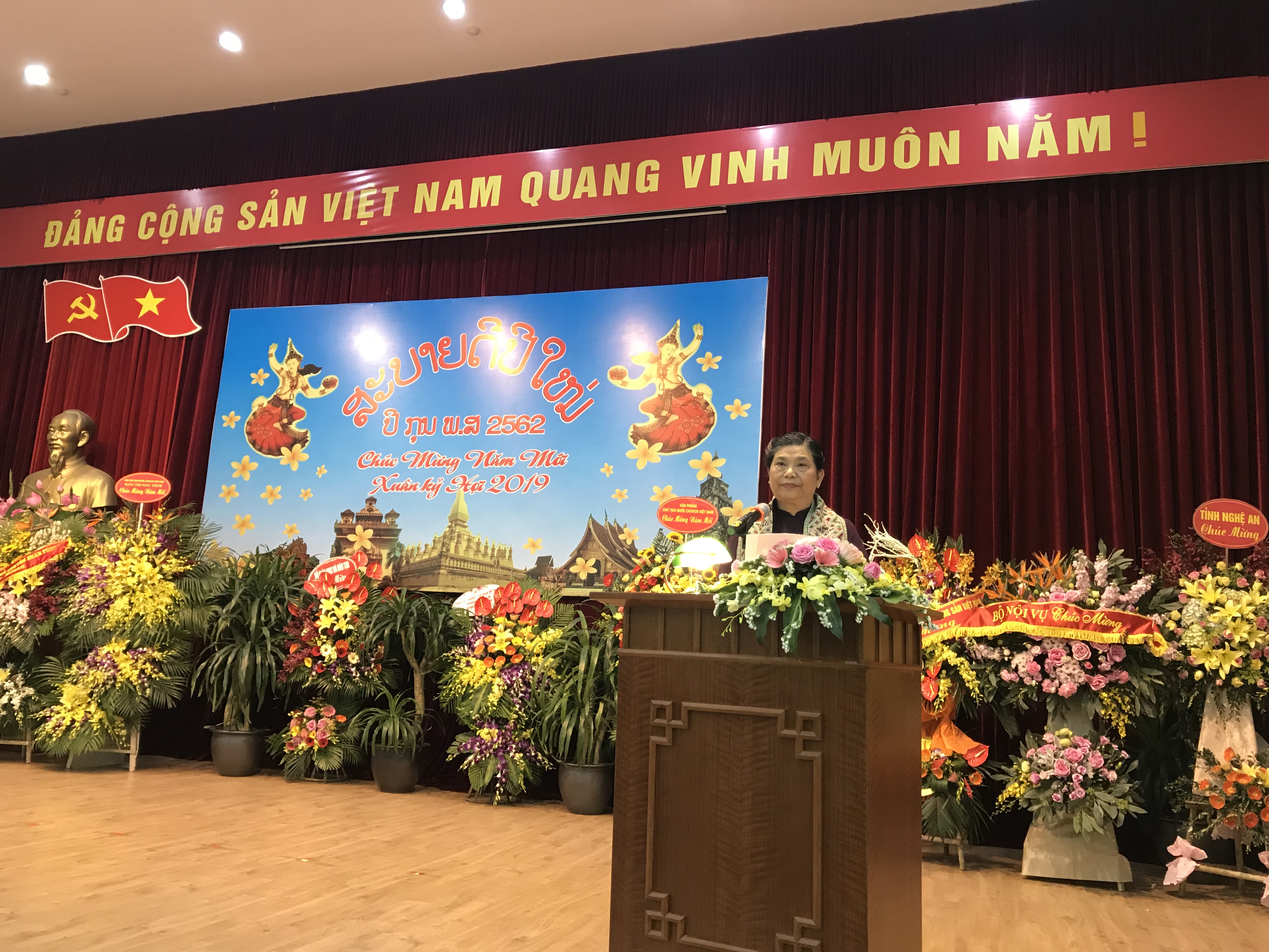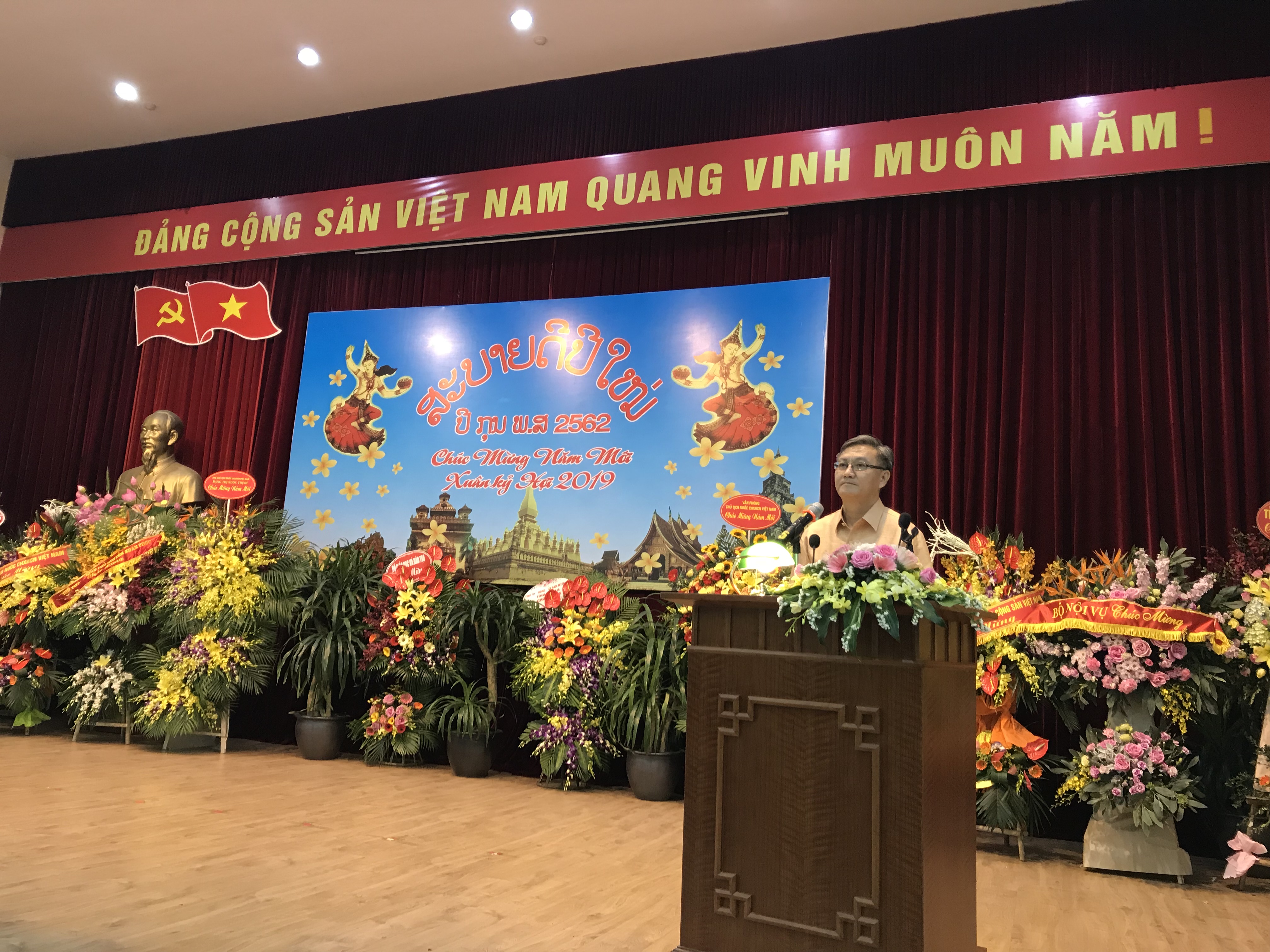 ຕອນຄ່ຳວັນທີ 11 ເມສາ, ຢູ່ຮ່າໂນ້ຍ, ສະຖານທູດລາວ ປະຈຳ ຫວຽດນາມ ໄດ້ຈັດຕັ້ງພິທີຕ້ອນຮັບບຸນປີໃໝ່ ລາວ ພສ 2562.