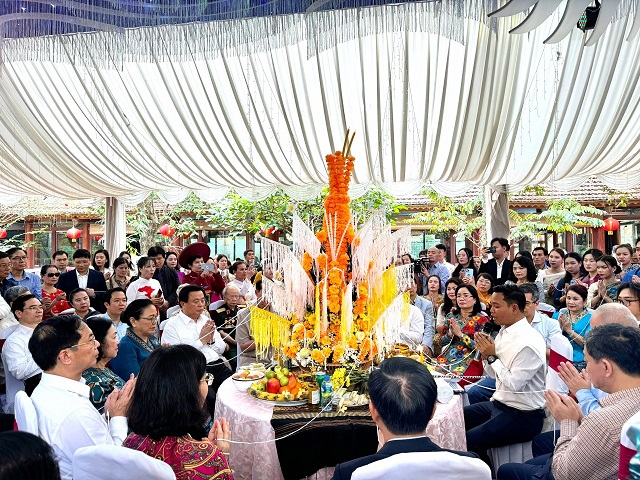 ທີ່ພິທີ, ບັນດາຜູ້ແທນ, ແຂກຖືກເຊີນ ໄດ້ຮັບຊົມບັນດາລາຍການສະແດງສິລະປະໂດຍນັກສຶກສາລາວ ສະແດງ, ເຂົ້າຮ່ວມພິທີບາສີສູ່ຂວັນ, ມັດແຂນ ແລະ ຮັບປະທານອາຫານທີ່ເປັນເອກະລັກຂອງລາວ ອີກດ້ວຍ. ນອກຈາກນັ້ນແລ້ວ, ແຂກຖືກເຊີນຍັງໄດ້ເຊື່ອມຕົວເຂົ້າກັບສຽງຂັບ, ສຽງລຳ, ການຟ້ອນລຳວົງ ແລະ ຫົດນ້ຳອວຍພອນເຊິ່ງກັນ ແລະ ກັນ, ເຊິ່ງເປັນໜຶ່ງໃນບັນດາຈຸດວັດທະນະທຳທີ່ເປັນເອກະລັກໃນ ບຸນປີໃໝ່ ລາວ./.