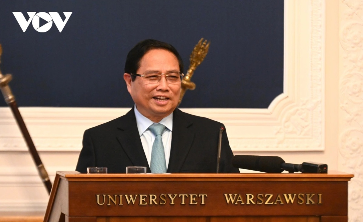 ຕອນເຊົ້າວັນທີ 17 ມັງກອນ (ຕາມເວລາທ້ອງຖິ່ນ), ໂດຍສືບຕໍ່ການຢ້ຽມຢາມ ໂປໂລຍ ຢ່າງເປັນທາງການ, ທ່ານນາຍົກລັດຖະມົນຕີ ຫວຽດນາມ ຟ້າມມິງຈິງ ໄດ້ໄປຢ້ຽມຢາມມະຫາວິທະຍາໄລສັງລວມ Warsaw ແລະ ມີບົດກ່າວປາໄສນະໂຍບາຍສຳຄັນດ້ວຍຫົວຂໍ້ “ນຳການພົວພັນ ຫວຽດນາມ - ໂປໂລຍ ມຸ່ງໄປເຖິງລະດັບສູນກວ່າ, ເພື່ອສັນຕິພາບ ແລະ ການພັດທະນາຂອງ 2 ພາກພື້ນ ອາຊີຕາເວັນອອກສ່ຽງໃຕ້ - ເອີລົບກາງ”.