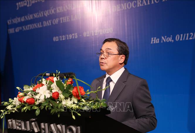 ທ່ານເອກອັກຄະລັດຖະທູດ ລາວ ປະຈຳ ຫວຽດນາມ ແສງເພັດ ຮຸ່ງບຸນຍວງ ກ່າວຄຳເຫັນທີ່ງານລ້ຽງ (ພາບ: TTXVN) |
