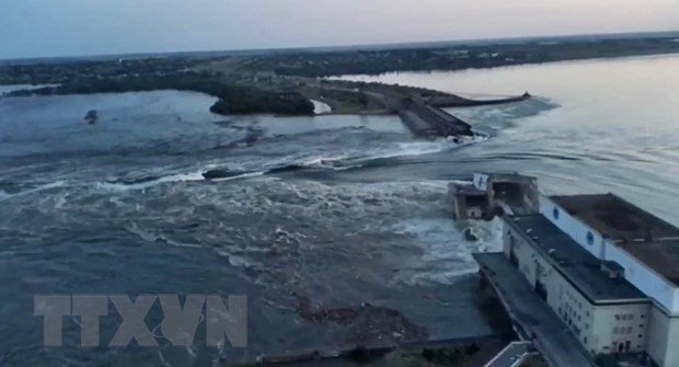 ເຫດເຂື່ອນໄຟຟ້ານ້ຳຕົກ Kakhovka ແຕກ(ພາບ: AFP/TTXVN)