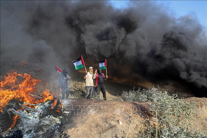 ການປະທະກັນ ລະຫວ່າງພົນທະຫານ ອິດສະຣາແອນ ແລະ ຜູ້ແຫ່ຂະບວນ ແມ່ນຊາວປາແລດສະຕິນ ຢູ່ໃກ້ກັບຊາຍແດນ ກາຢາ - ອິດສະຣາແອນ ເມື່ອວັນທີ 19 ມີຖຸນາ. ພາບ: THX/TTXVN |
