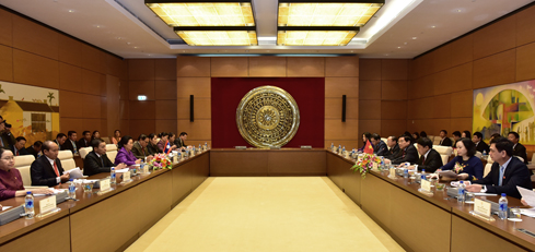 (VOVWORLD) -ວັນທີ 6 ມີນາ, ຢູ່ ຫໍສະພາແຫ່ງຊາດ, ທ່ານ ຮ່າງອກຈຽນ, ປະທານສະພາຊົນເຜົ່າ ໄດ້ມີການເຈລະຈາກັບ ຄະນະຜູ້ແທນ ກຳມາທິການ ບັນດາເຜົ່າ ຂອງສະພາແຫ່ງຊາດລາວ ໂດຍທ່ານນາງ ບົວພັນ ລີໄກຢາ ປະທານກຳມາທິການ ບັນດາເຜົ່າ ເປັນຫົວຫນ້າຄະນະ.