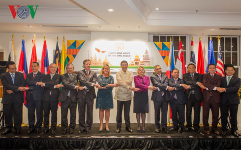 ທີ່ພິທີ, ບັນດາເອກອັກຄະລັດຖະທູດ, ອຸປະທູດ ແລະ ແຂກຖືກເຊີນພ້ອມກັນຫວນຄືນ 50 ປີແຫ່ງການພັດທະນາຂອງ ອາຊຽນ, ການພົວພັນ ອາຊຽນ - ອາເມລິກາ, ບົດບາດຂອງ ອາຊຽນ ໃນບັນດາບັນຫາສາກົນໃນປະຈຸບັນ. ໃນຕະຫຼອດ 50 ປີທີ່ຜ່ານມາ, ອາຊຽນມີບາດກ້າວພັດທະນາກະໂດດຂັ້ນ, ກາຍເປັນອົງການສວມບົດບາດໃຈກາງຂອງພາກພື້ນ, ສ້າງປະຊາຄົມ ອາຊຽນ ສາມັກຄີ, ສັນຕິພາບ, ສະຖຽນລະພາບ ແລະ ໝັ້ນຄົງເຂັ້ມແຂງ, ມີພື້ນຖານເສດຖະກິດພັດທະນາຂະຫຍັນຂັນເຄື່ອນ, ເປີດກ້ວາງການຮ່ວມມືກັບບັນດາຄູ່ຮ່ວມມື ແລະ ປະກອບສ່ວນສຳຄັນເຂົ້າໃນສັນຕິພາບ, ຄວາມໝັ້ນຄົງ ແລະ ການພັດທະນາວັດທະນາຖາວອນຢູ່ພາກພື້ນ. ບັນດາຜູ້ແທນກໍ່ໄດ້ຕີລາຄາການພົວພັນຄູ່ຮ່ວມມືຍຸດທະສາດ ອາຊຽນ - ອາເມລິກາ ເນື່ອງໃນໂອກາດສະເຫຼີມສະຫຼອງ 40 ປີແຫ່ງວັນສ້າງຕັ້ງການພົວພັນລະຫວ່າງ 2 ຝ່າຍໃນປີ 2017.