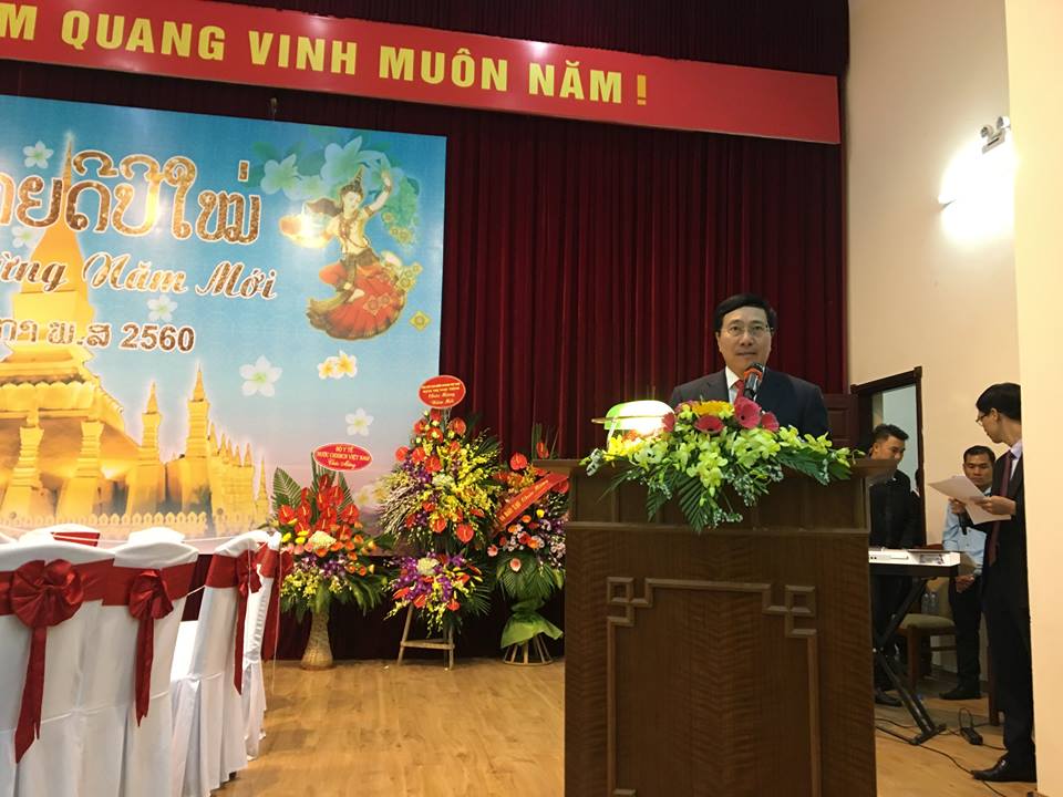 ຕາງໜ້າພັກ, ລັດ ແລະ ປະຊາຊົນ ຫວຽດນາມ, ທ່ານ ຟ້າມບີງມິງ ຮອງນາຍົກລັດຖະມົນຕີ, ລັດຖະມົນຕີກະຊວງການຕ່າງປະເທດ ຫວຽດນາມ ໄດ້ສົ່ງຄຳອວຍພອນປີໃໝ່ເຖິງການນຳພັກ, ລັດ ແລະ ປະຊາຊົນ ລາວ. ທ່ານຮອງນາຍົກລັດຖະມົນຕີ ຟ້າມບີງມິງ ຢືນຢັນວ່າ: ຫວຽດນາມ ໝັ້ນໝາຍຈະພ້ອມກັບປະເທດ ລາວ ອ້າຍນ້ອງຮັກສາ ແລະ ເສີມຂະຫຍາຍມູນເຊື້ອສາມັກຄີມິດຕະພາບແບບພິເສດ, ຍູ້ແຮງການພົວພັນຮ່ວມມືຮອບດ້ານລະຫວ່າງ 2 ປະເທດໃຫ້ຂຶ້ນສູ່ລະດັບສູງໃໝ່ຢ່າງບໍ່ຢຸດຢັ້ງ. ທ່ານຮອງນາຍົກລັດຖະມົນຕີ ຟ້າມບີງມິງ ກ່າວວ່າ: