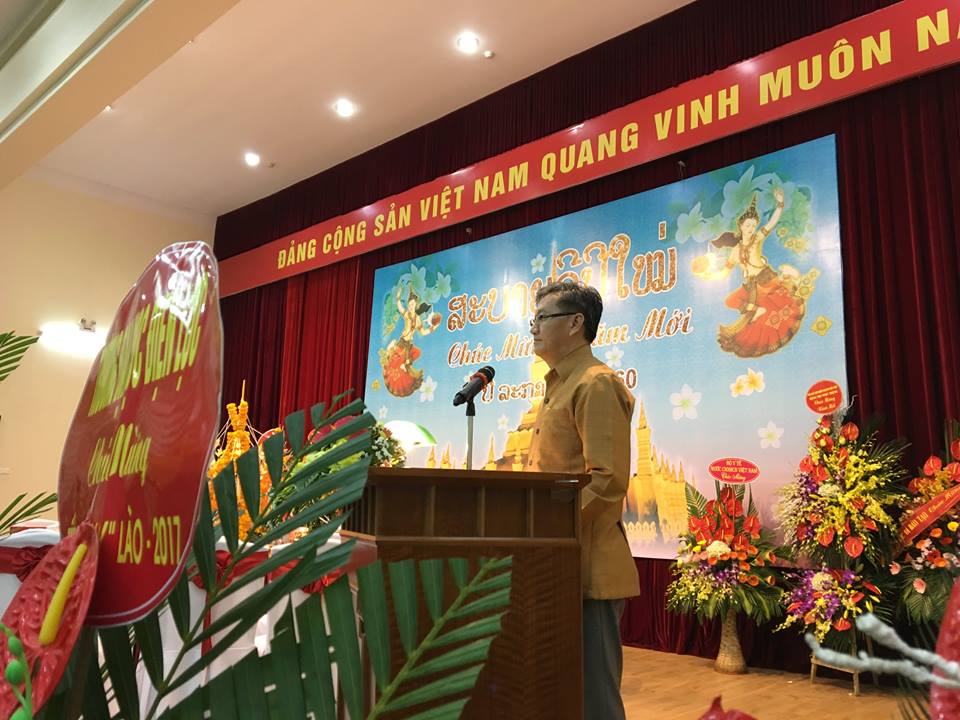 (vovworld) - ຕອນຄຳ່ວັນທີ 07/04 ຢູ່ ຮ່າໂນ້ຍ ສະຖານທູດ ລາວ ປະຈຳ ຫວຽດນາມ ໄດ້ຈັດຕັ້ງງານລ້ຽງຂ່ຳນັບຮັບຕ້ອນບຸນປີໃໝ່ (ພສ 2560) ປີລະກາ 2017. ກ່າວຄຳເຫັນທີ່ພິທີ, ທ່ານ ທອງສະຫວັນ ພົມວິຫານ ເອກອັກຄະລັດຖະທູດວິສາມັນຜູ້ມີອຳນາດເຕັມແຫ່ງ ສປປ.ລາວ ປະຈຳ ຫວຽດນາມ ໄດ້ຊີ້ແຈ້ງບາງຜົນງານ ເຊິ່ງປະຊາຊົນບັນດາເຜົ່າ ລາວ ອ້າຍນ້ອງບັນລຸໄດ້ໃນປີຜ່ານມາ ແລະ ຢືນຢັນວ່າ ບັນດາຜົນງານນັ້ນ ສ່ວນໜຶ່ງແມ່ນຍ້ອນມີການຊ່ວຍເຫຼືອຂອງພັກ, ລັດ ແລະ ປະຊາຊົນ ຫວຽດນາມ.