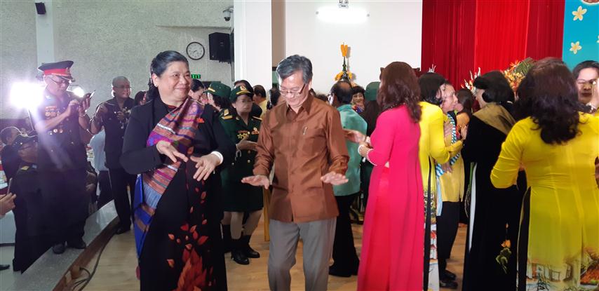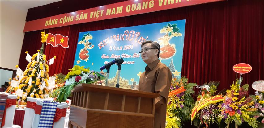 ທ່າມກາງບັນຍາກາດທີ່ເຕັມໄປດ້ວຍຄວາມເບີກບານມ່ວນຊື່ນໃນພິທີຕ້ອນຮັບບຸນປີໃໝ່, ທ່ານ ທອງສະຫວັນ ພົມວິຫານ, ເອກອັກຄະລັດຖະທູດວິສາມັນ ຜູ້ມີອຳນາດເຕັມແຫ່ງສປປ.ລາວ ປະຈຳຫວຽດນາມ ໄດ້ຕີລາຄາສູງການຊ່ວຍເຫຼືອຂອງຫວຽດນາມ ໃຫ້ແກ່ລາວ ໃນຕະຫຼອດໄລຍະຜ່ານມາ.
