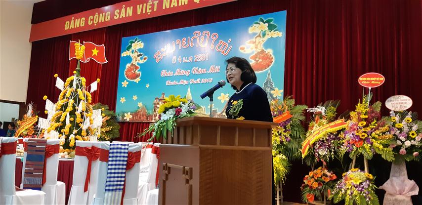ເຂົ້າຮ່ວມ ແລະ ກ່າວຄຳເຫັນຢູ່ທີ່ນີ້, ໂດຍຕາງໜ້າໃຫ້ພັກ, ລັດ, ລັດຖະບານ ແລະ ປະຊາຊົນຫວຽດນາມ, ທ່ານນາງ ດັ້ງທິຫງອັກທິ້ງ, ຮອງປະທານປະເທດ ໄດ້ສົ່ງຄຳອວຍພອນປີໃໝ່ອັນດີງາມທີ່ສຸດເຖິງພັກ, ລັດ, ລັດຖະບານ ແລະ ປະຊາຊົນລາວ ບັນດາເຜົ່າ ອ້າຍນ້ອງ, ພ້ອມທັງຢືນຢັນວ່າ.