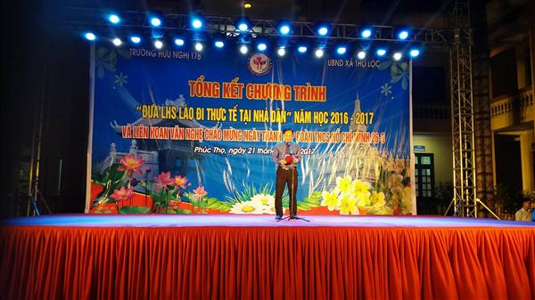 ທີ່ພິທີ, ທ່ານ ເລຟຸ໋ທັ໋ງ, ຮອງຫົວໜ້າອຳນວຍການໂຮງຮຽນ T78, ຫົວໜ້າຄະນະຈັດຕັ້ງແຜນຮ່າງ homestay ໃຫ້ຮູ້ວ່າ: ລາຍການ homestay ສົກຮຽນ 2016 – 2017 ໄດ້ຮັບການຜັນຂະຫາຍດ້ວຍຂອບຂະໜາດໃຫຍ່, ດ້ວຍຈຳນວນນັກຮຽນເຂົ້າຮ່ວມແມ່ນ 80 ຄົນ, ພັກອາໄສຢູ່ກັບ 40 ຄອບຄົວໃນບ້ານ ເບື໋ອມ ແລະ ບ້ານ ໂຫທົນ ໄດ້ຮັບໝາກຜົນຢ່າງດີງາມ.